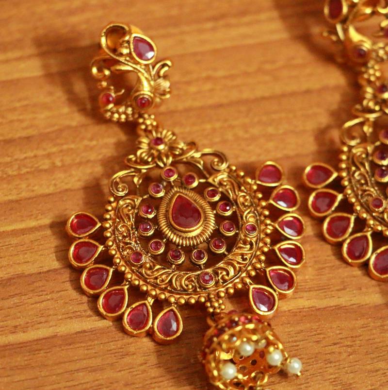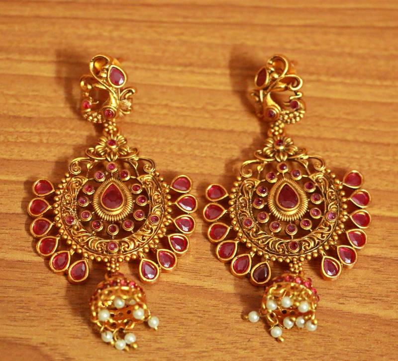 Ruby Antique look Polki Jhumka Style Earrings