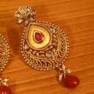 RUBY COLOUR KUNDAN WORK POLKI STUDDED DANGLERS