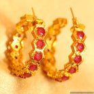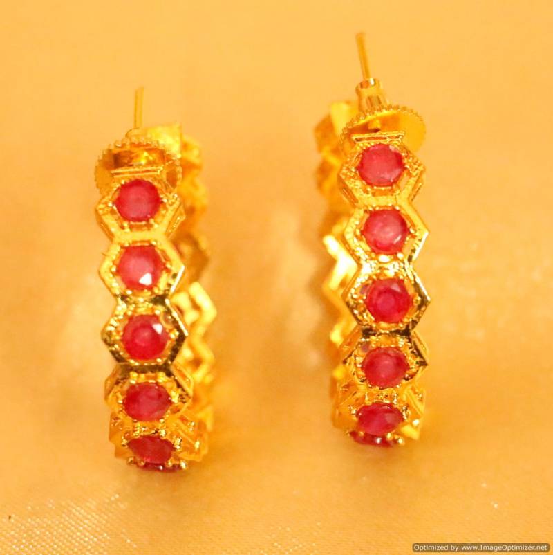 These beautiful earrings are handcrafted in brass alloy with imitation ruby work of very fine quality. These earrings are coated with 18 kt gold polish which give them a unique look . An absolutely stunning piece to own and are very light in weight.