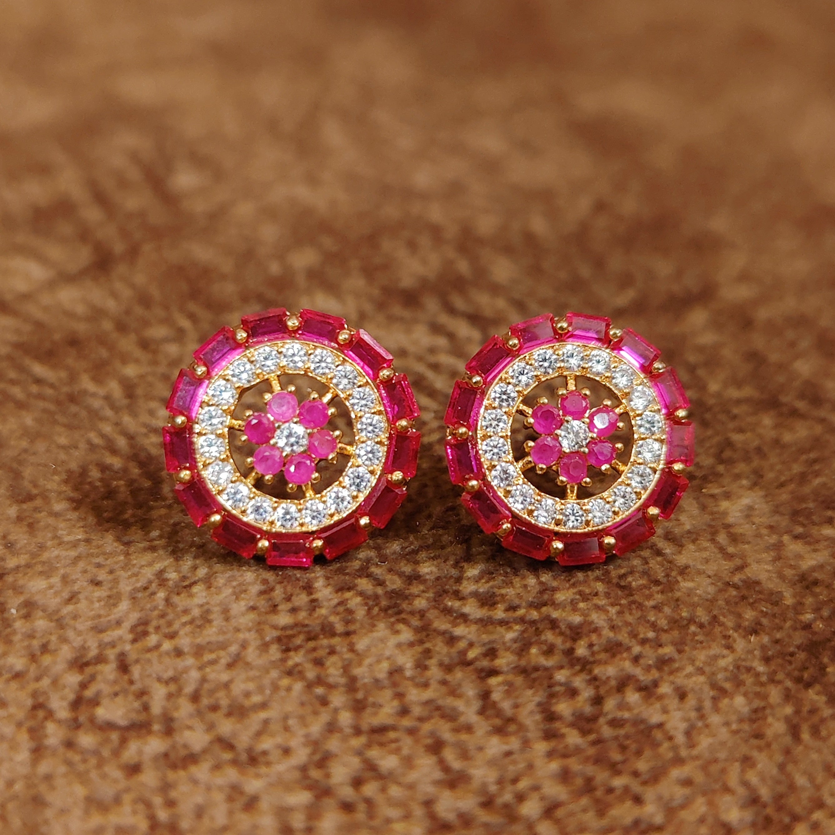 RUBY PINK CZ STUDDED ROUND SHAPED STUDS