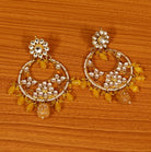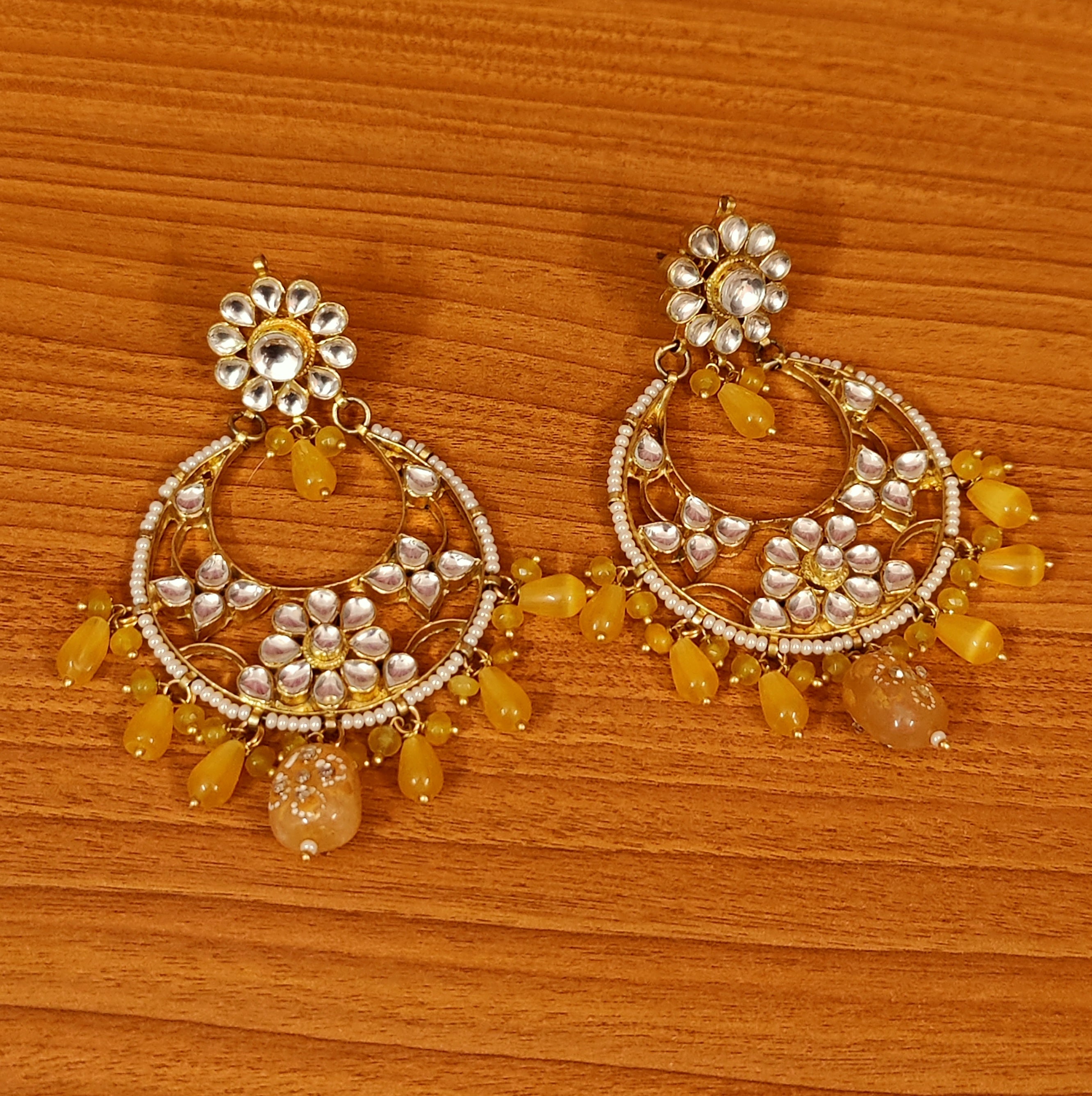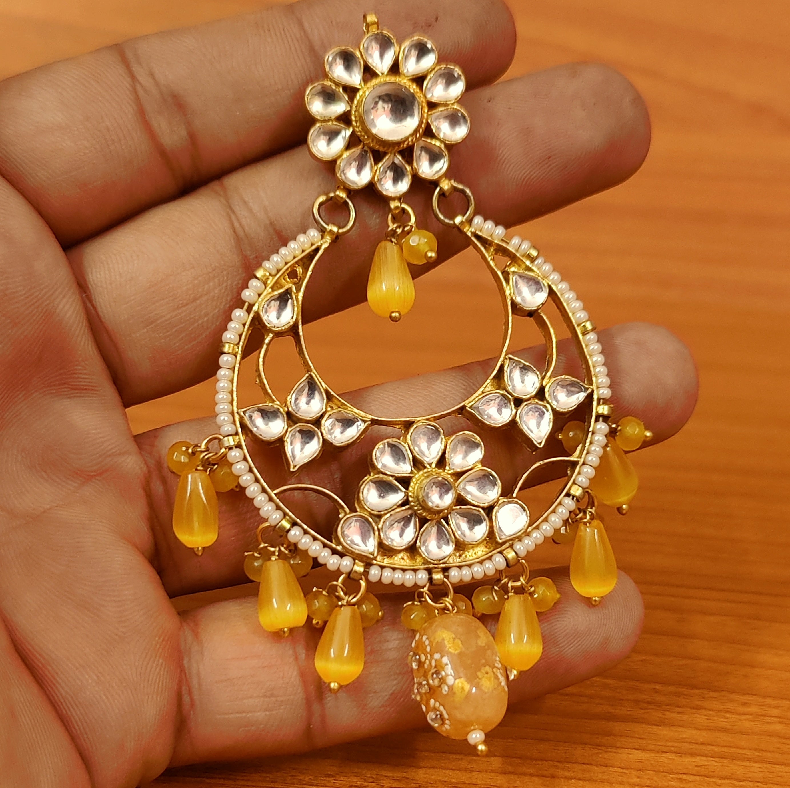 YELLOW QUARTZ KUNDAN POLKI & PEARL ANTIQUE CHANDBALI