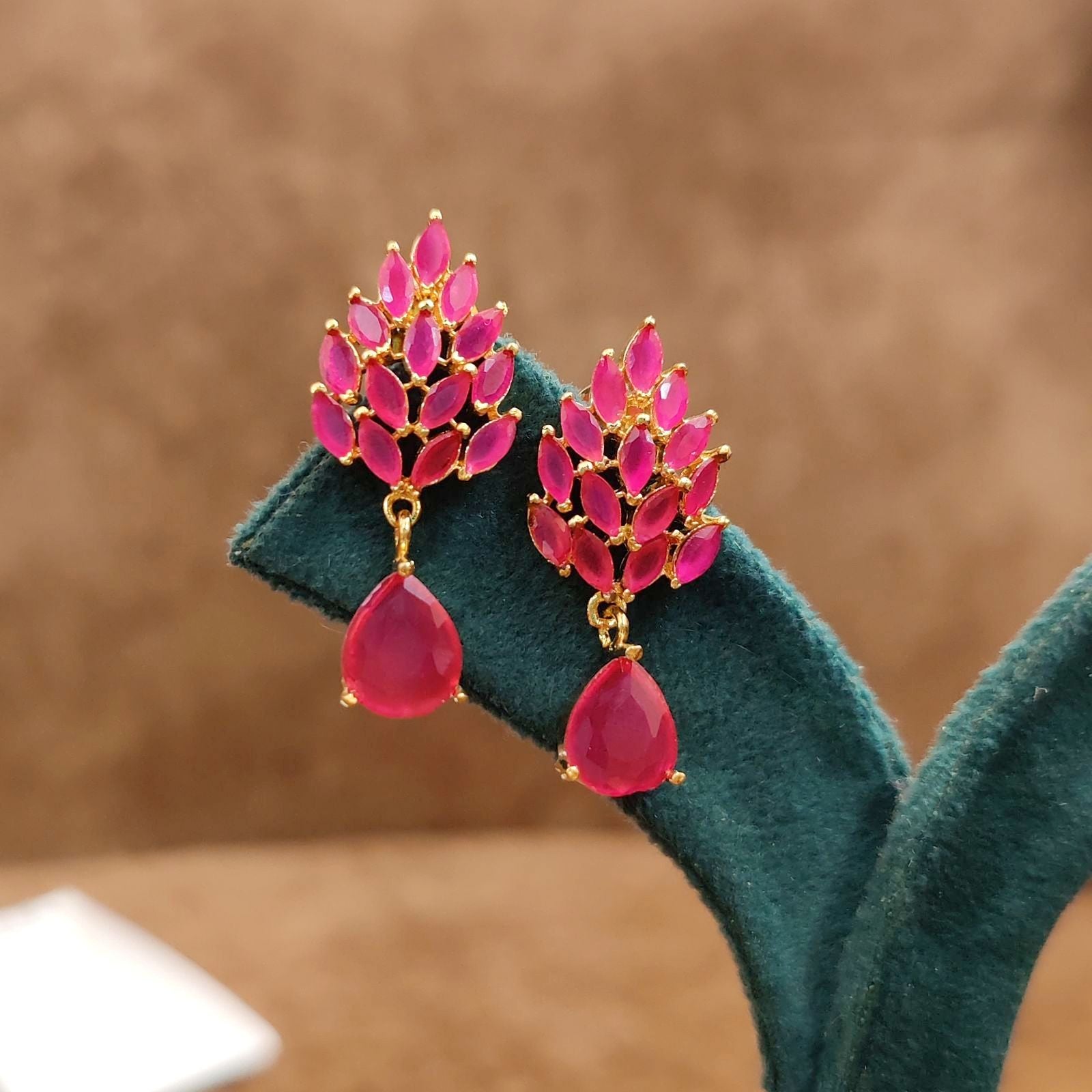 Blossom Ruby Drop Earrings – Gold-Plated Pink Stone Designer Studs