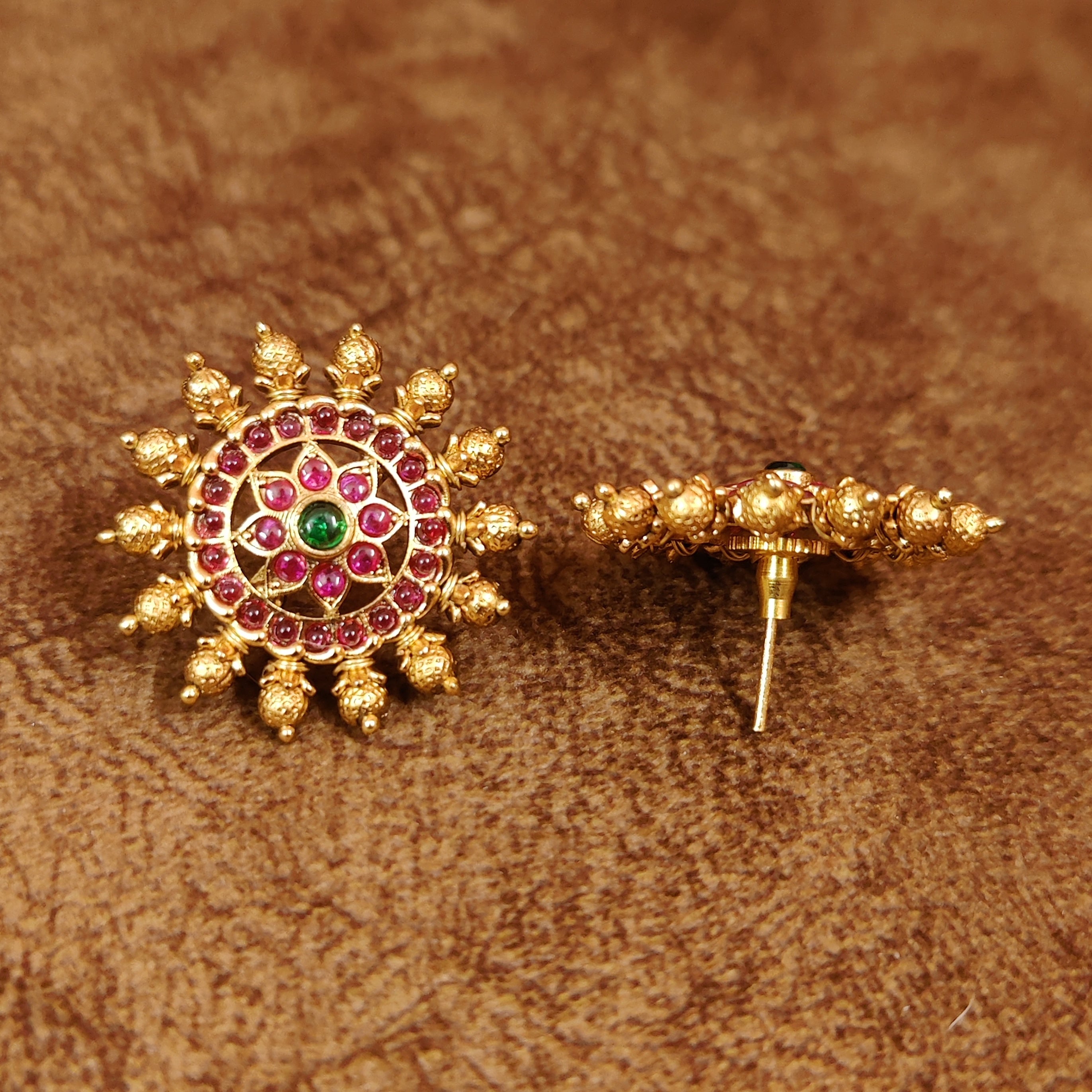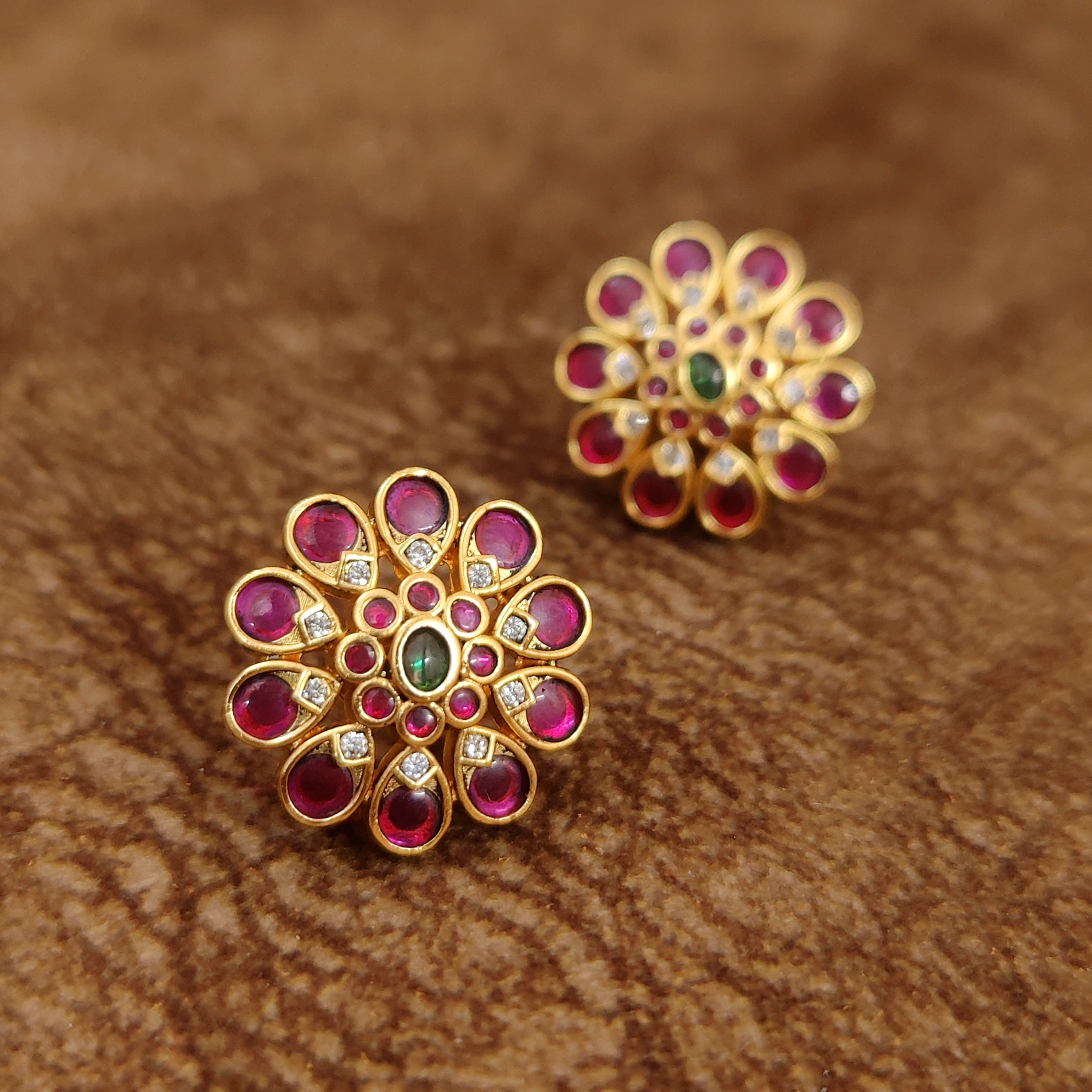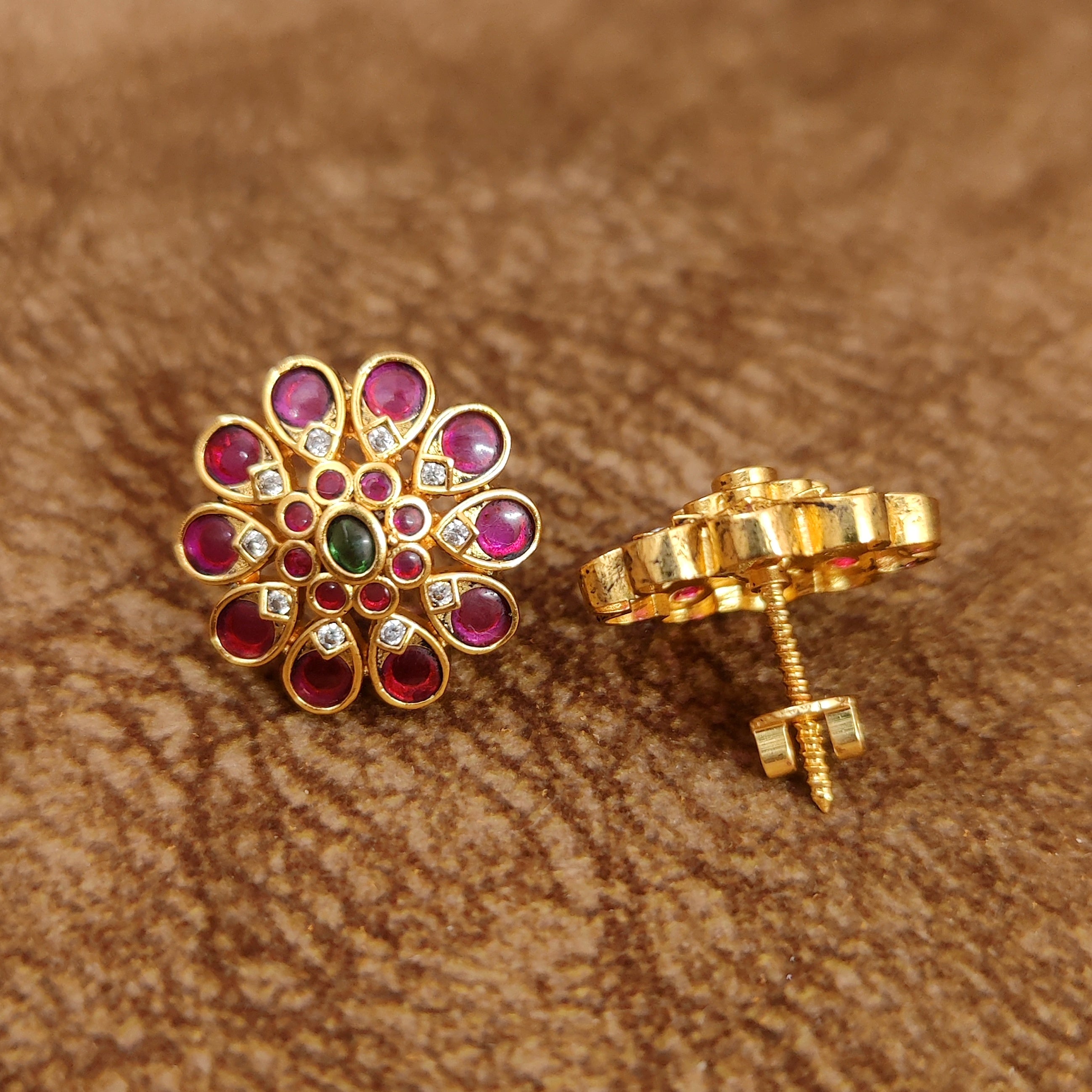 PREMIUM RUBY & EMERALD KEMPU STONE SCREW BACK STUDS