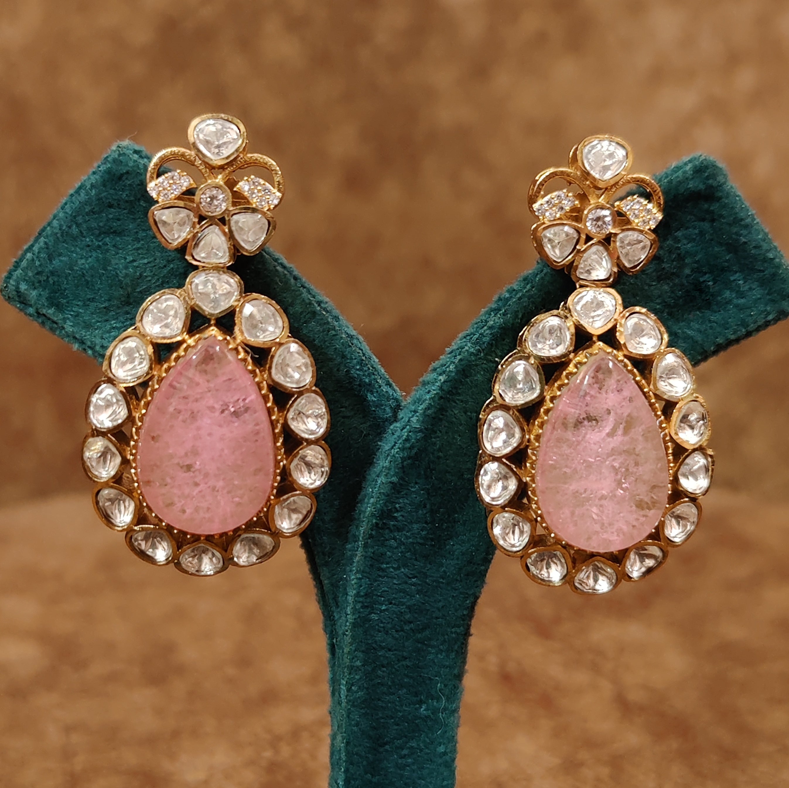 PINKISH STONE KUNDAN POLKI PAISLEY STUDS