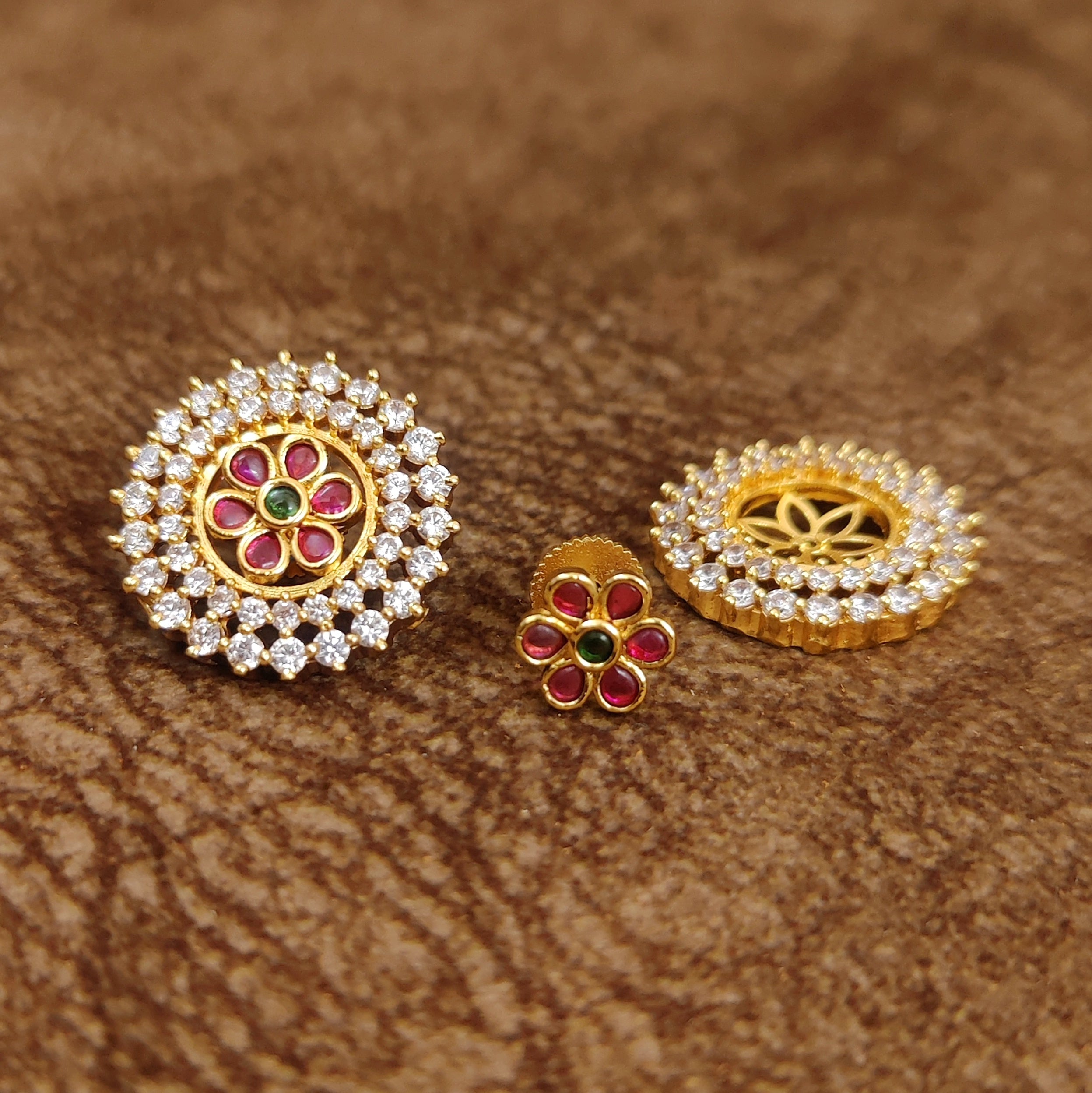 RUBY & EMERALD GOLD PLATED ROUND BIG STUDS