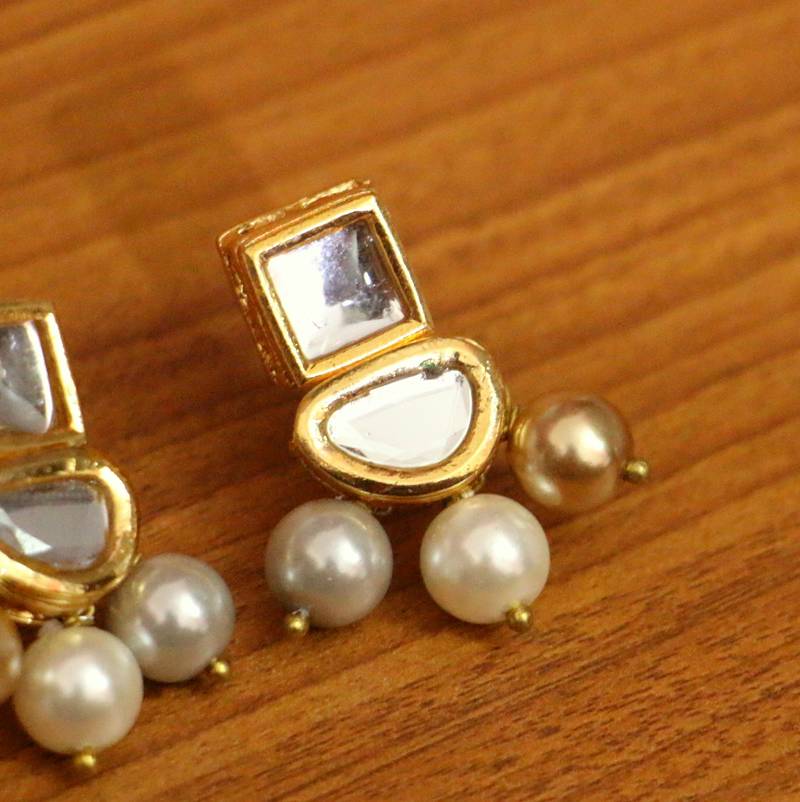 TEMPLE LOOK RED KEMP STONE PEARL EARRINGS