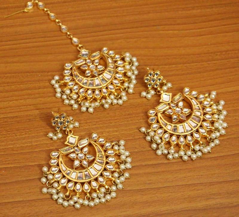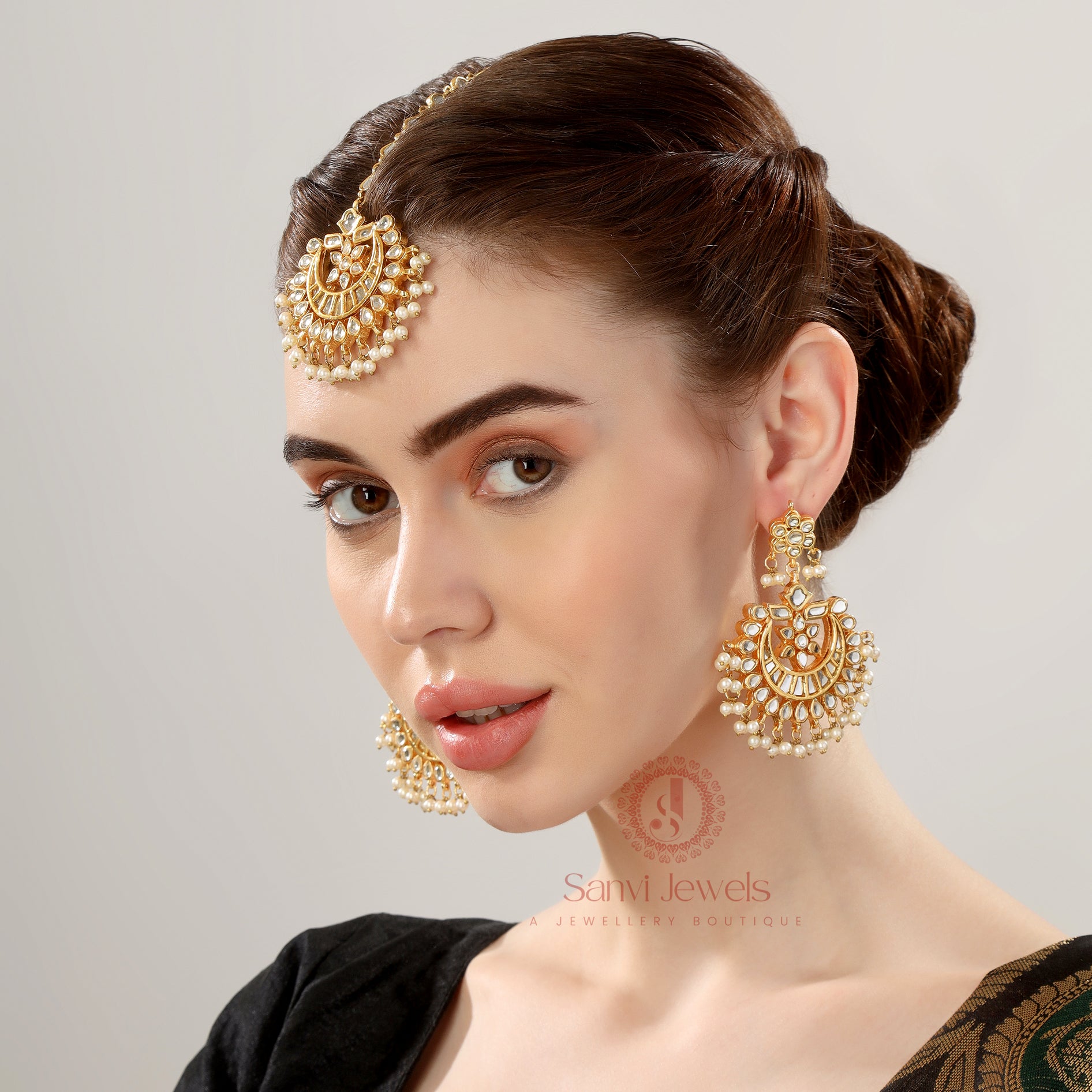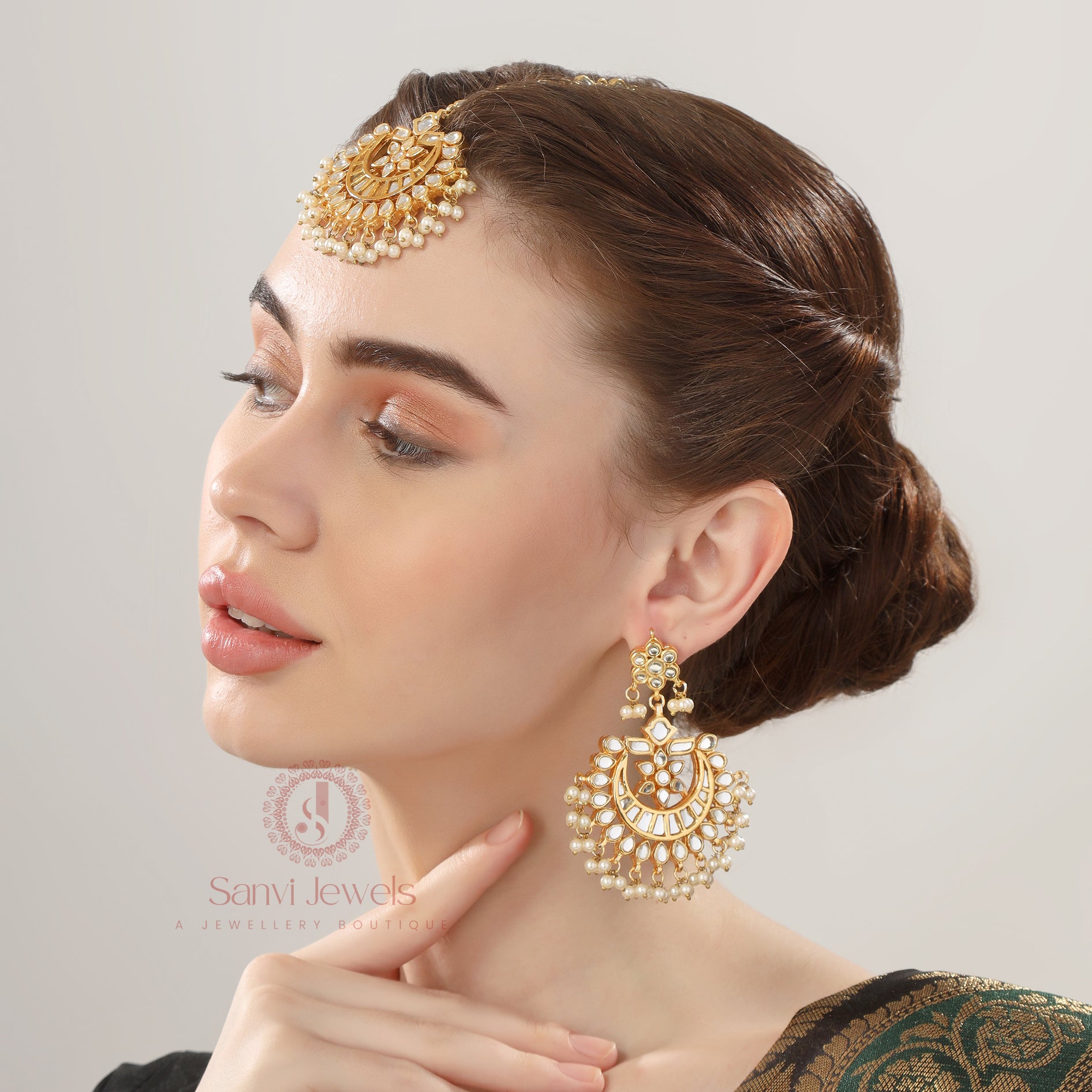 KUNDAN POLKI CZ STUDDED PEARL EARRINGS