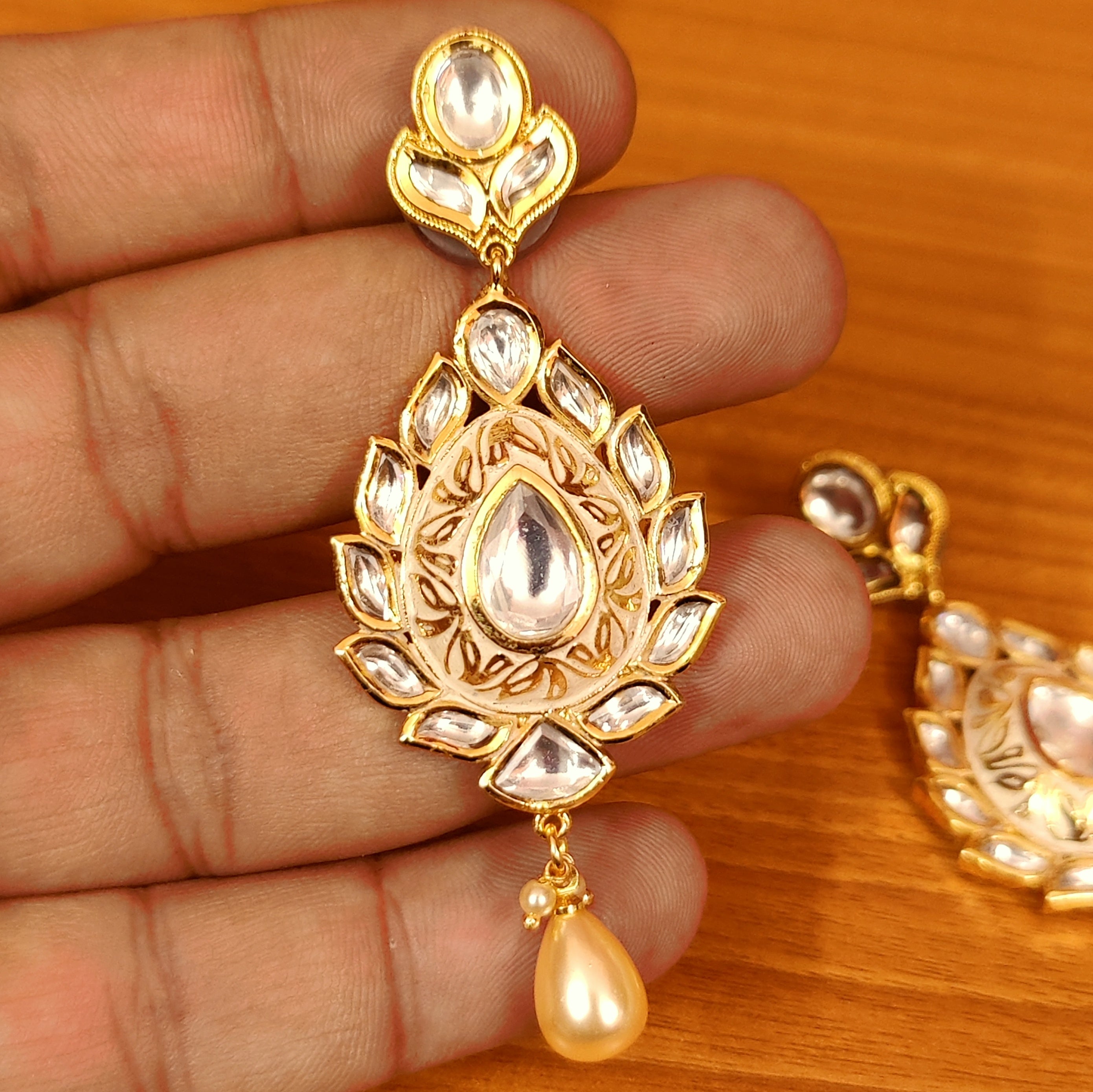 WHITE KUNDAN MEENAKARI UNCUT POLKI EARRINGS