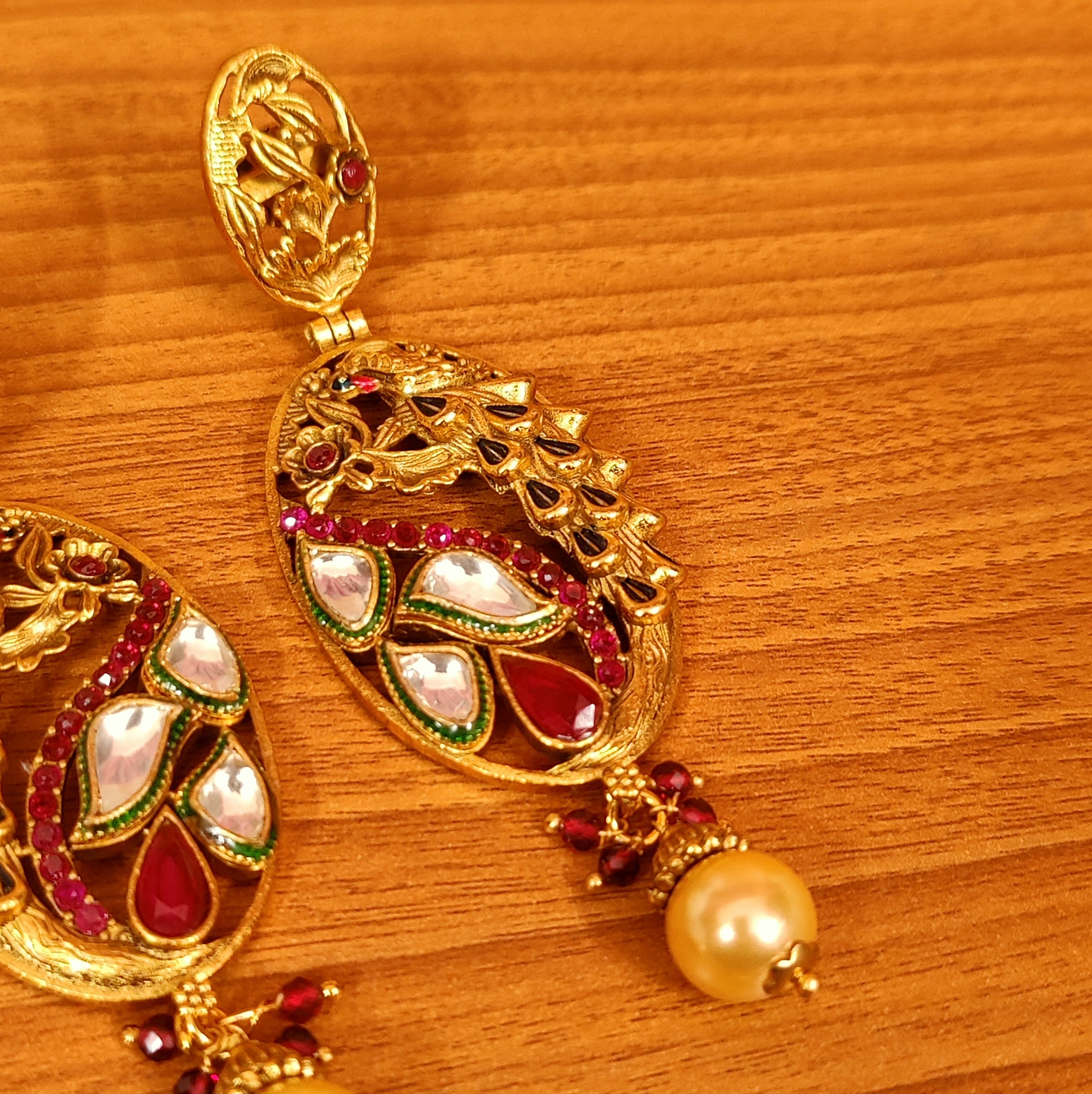 ANTIQUE GOLD LOOK KUNDAN STUDDED DANGLER