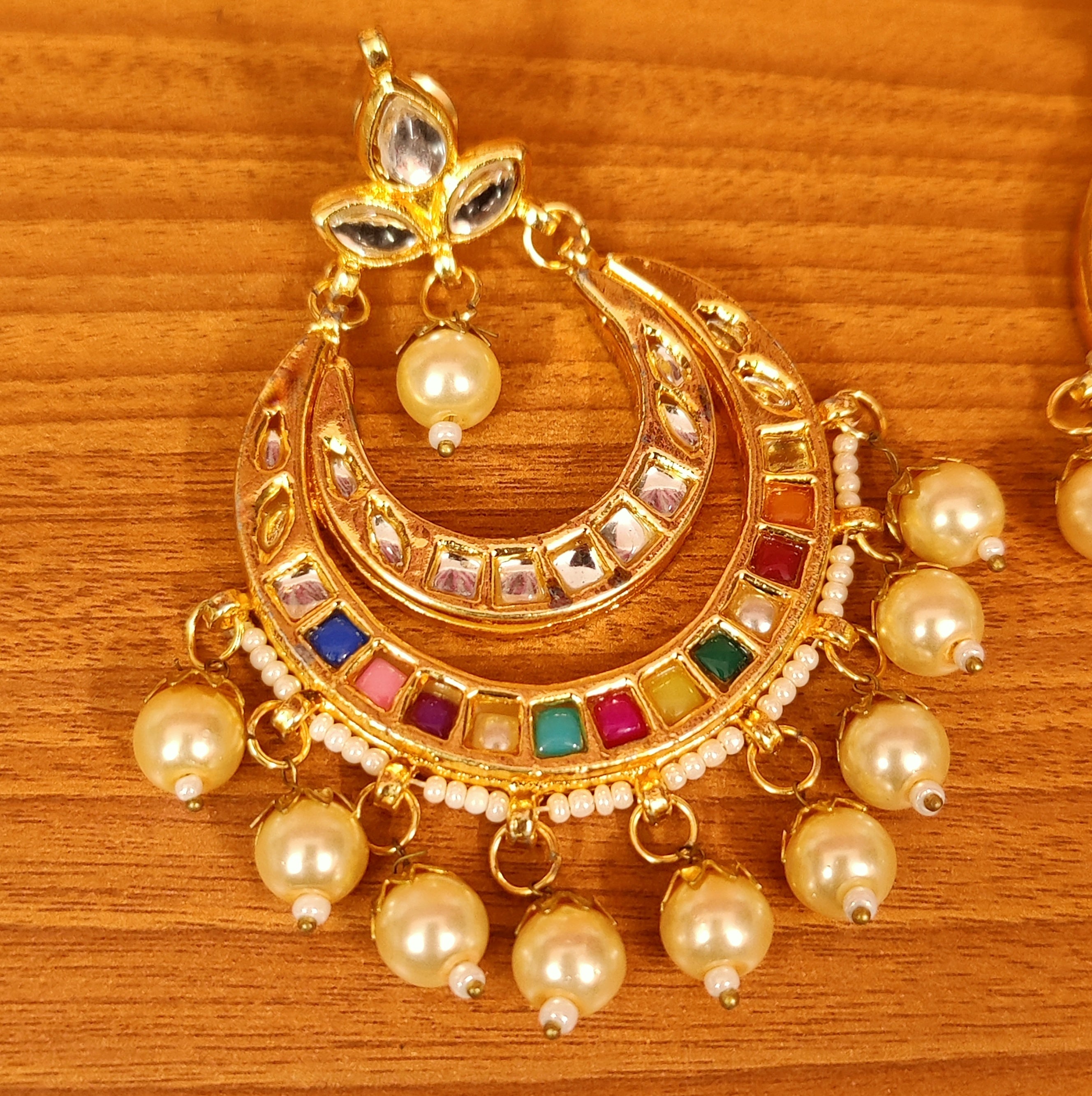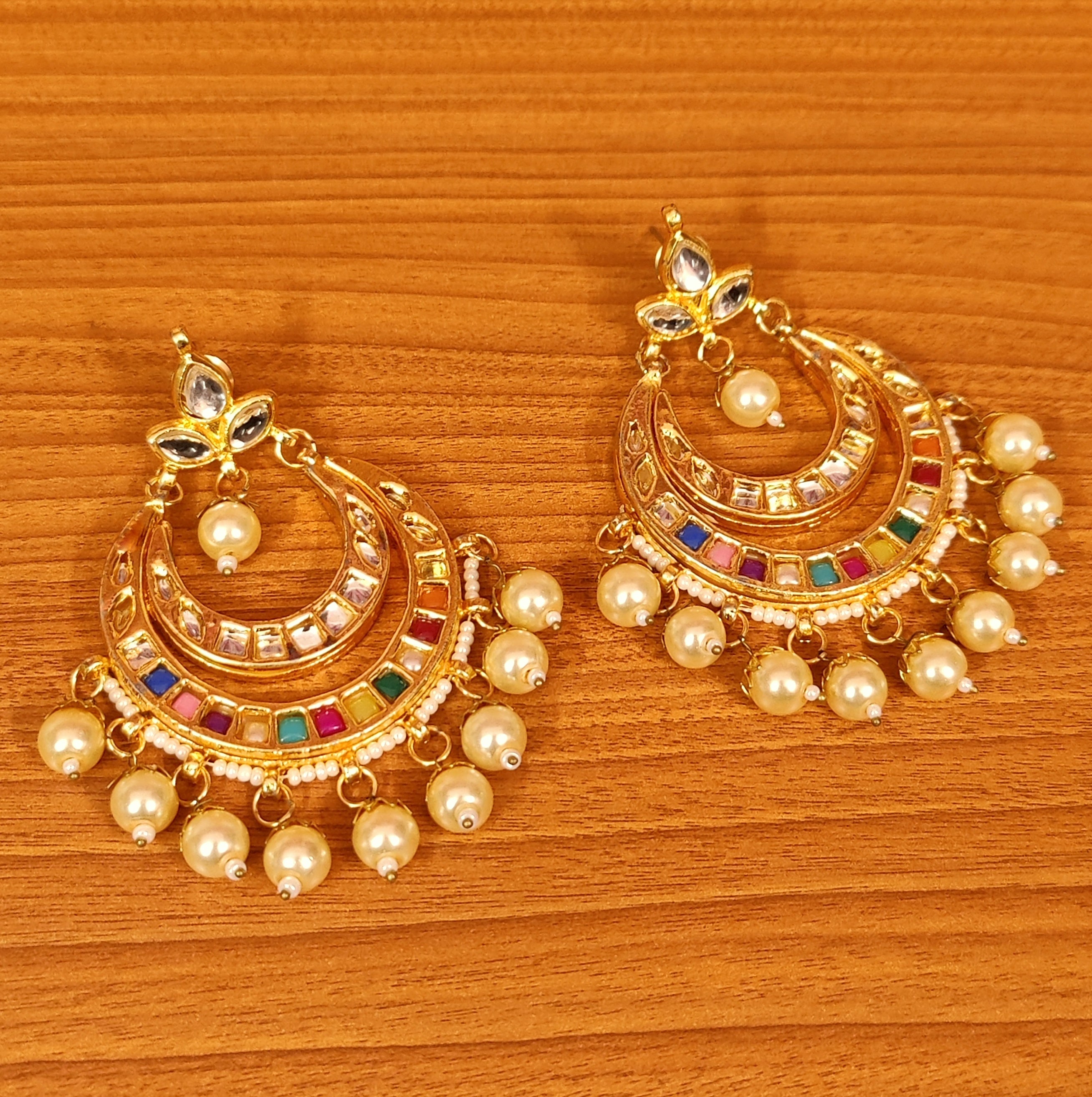 KUNDAN POLKI & PEARL GOLD LOOK CHAANDBALI