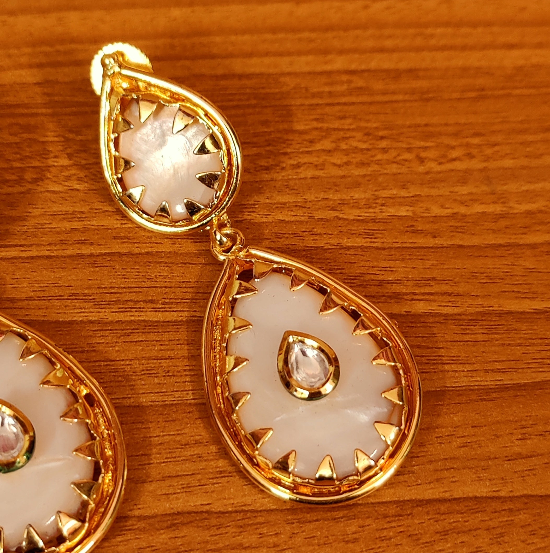 UNCUT KUNDAN POLKI GOLD LOOK DANGLERS