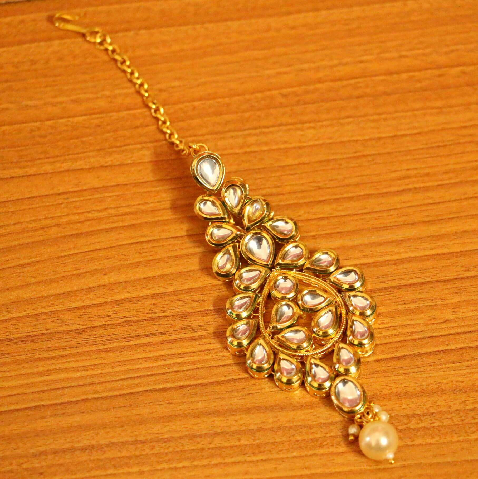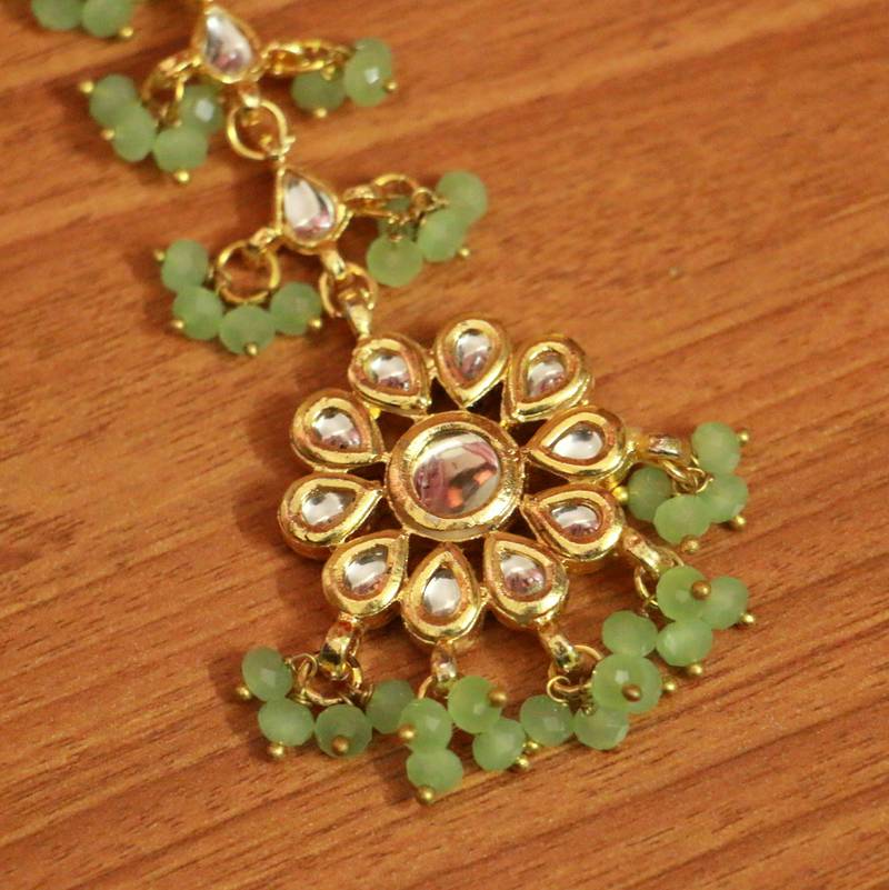 Light Green Crystal Kundan Meenakari Tikka With Earrings
