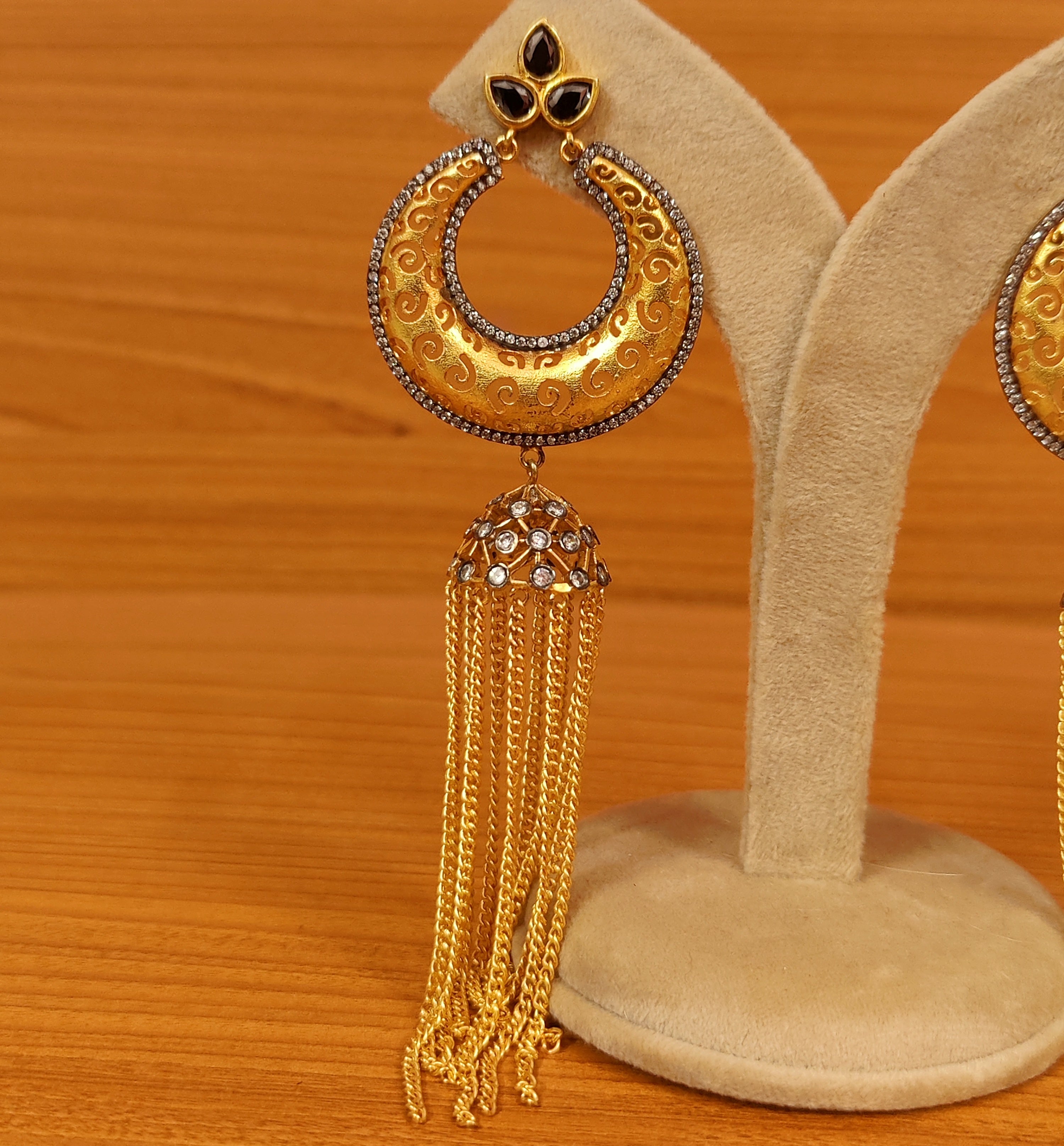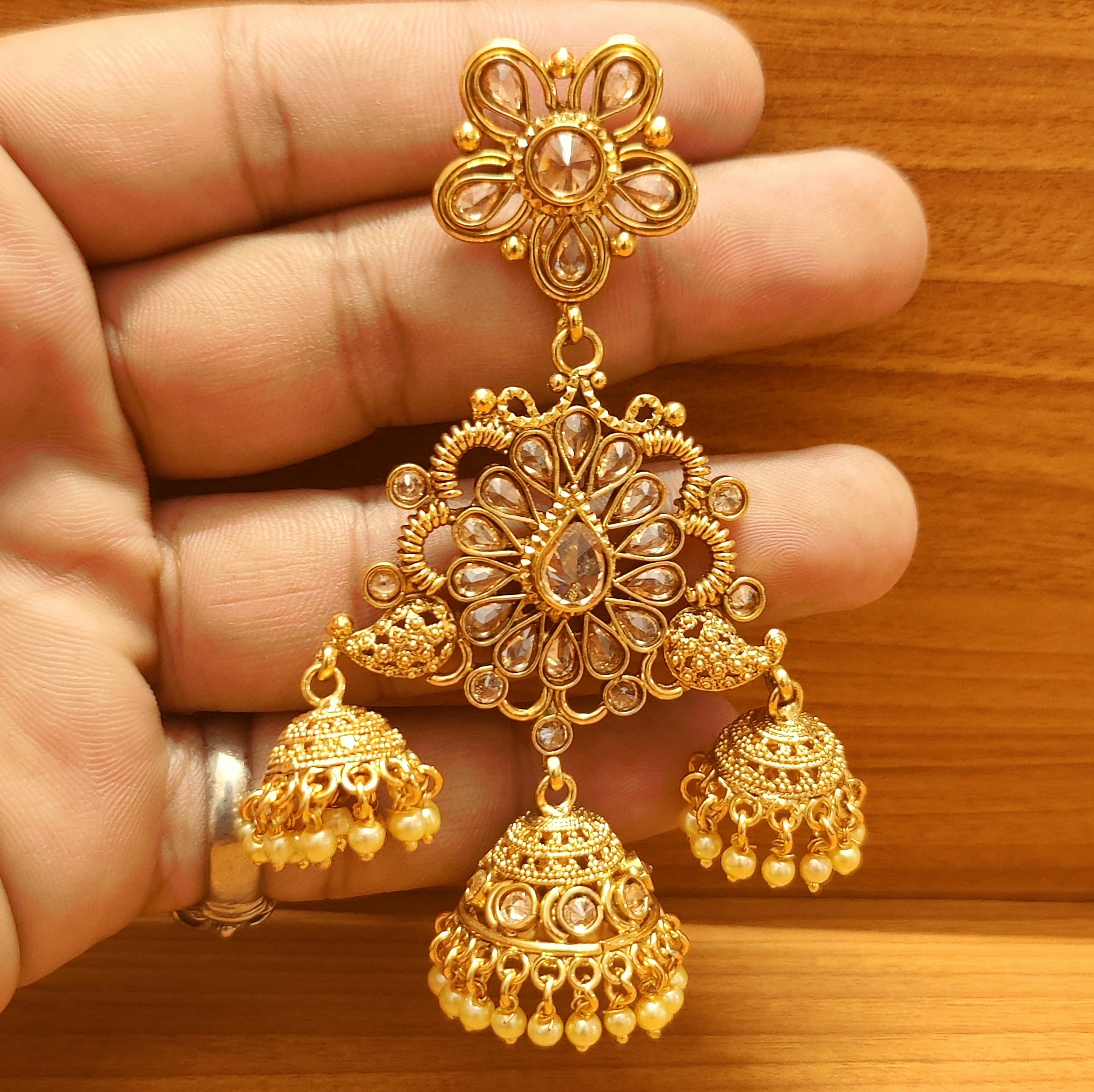 GOLD PLATED KUNDAN LOOK CHAIN JHUMKA'S