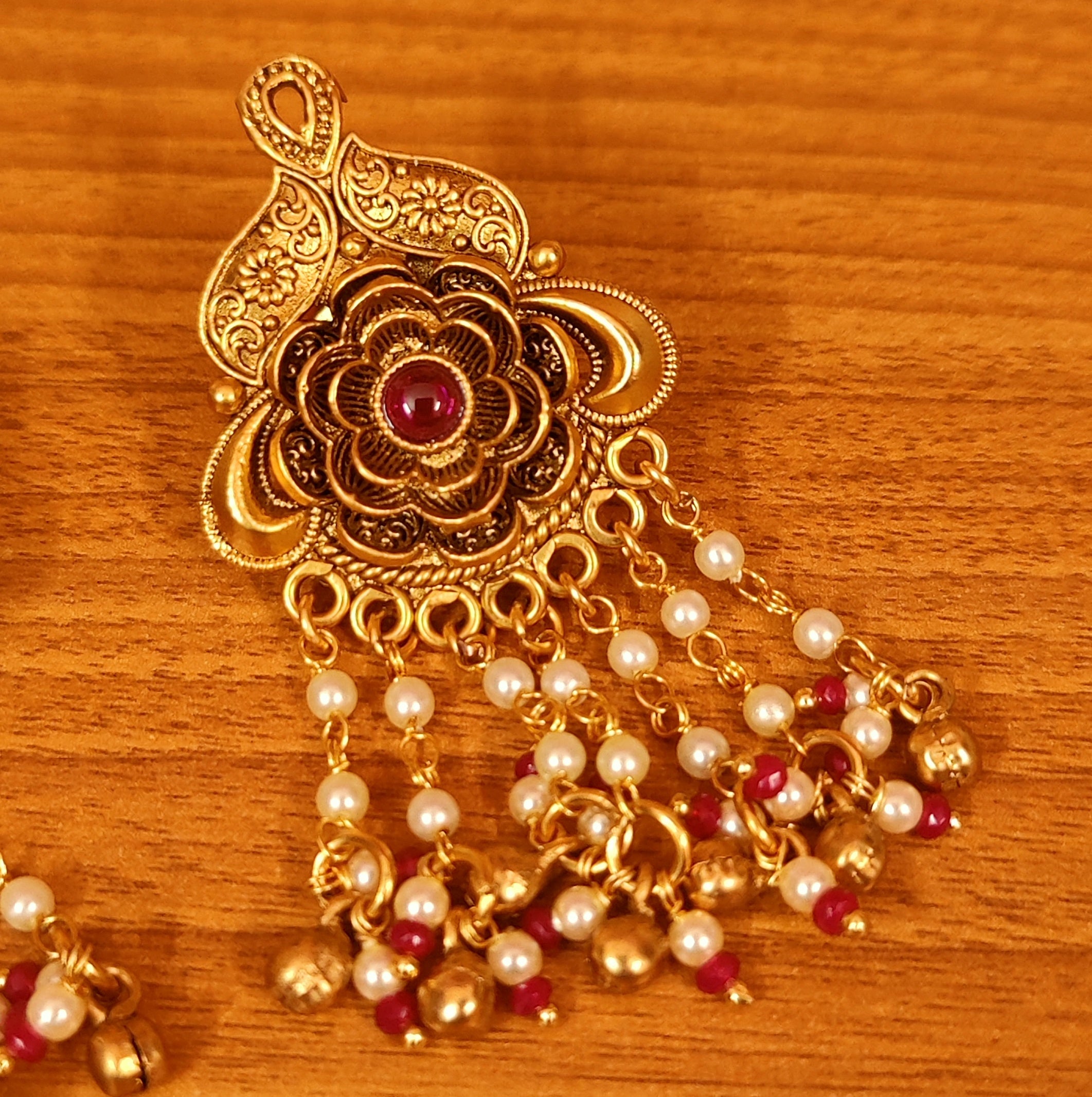 ANTIQUE GOLD LOOK PEARL STUDDED ETHNIC DANGLERS