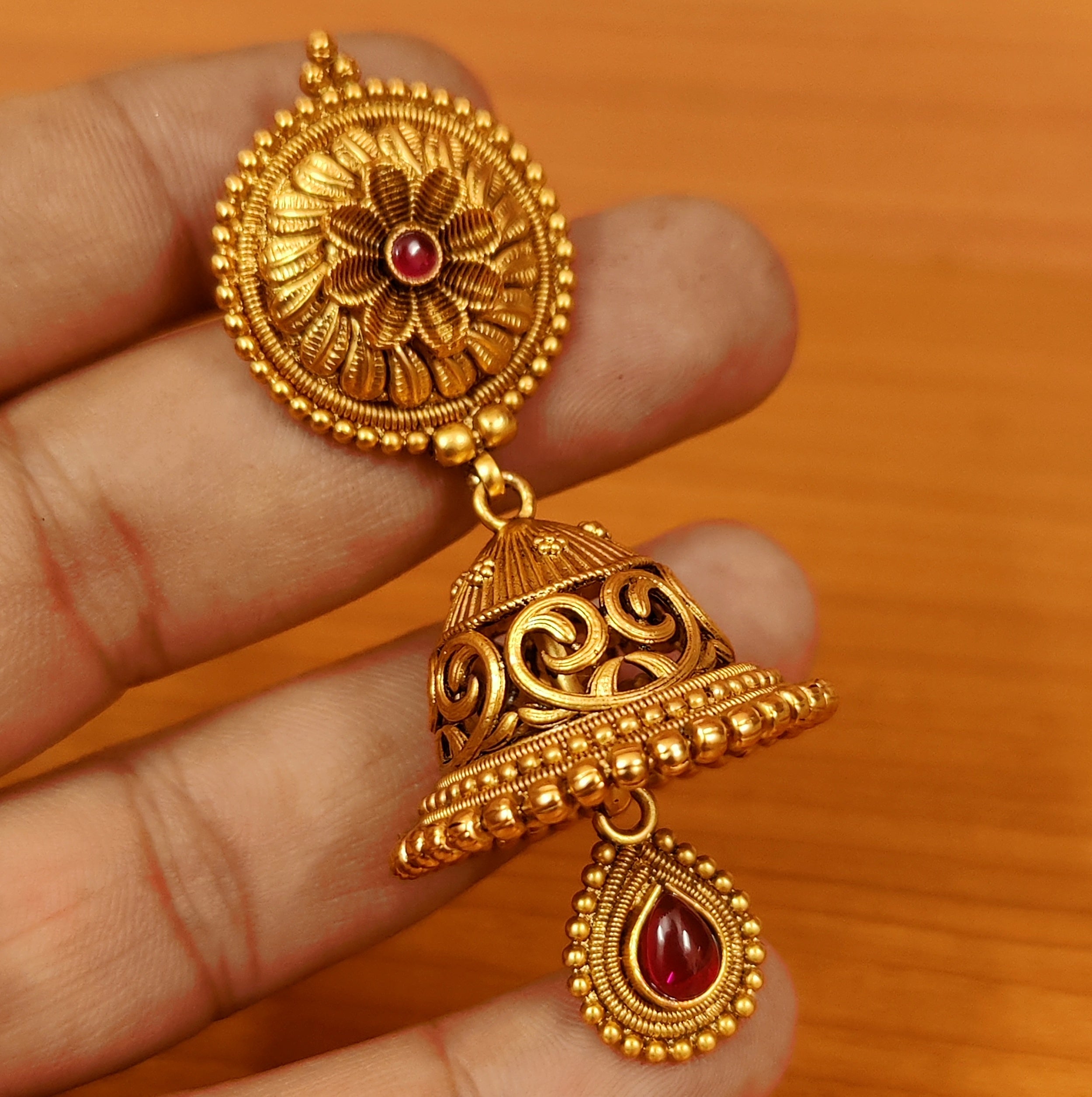 REAL GOLD LOOK RED KEMPU STONE JHUMKA'S