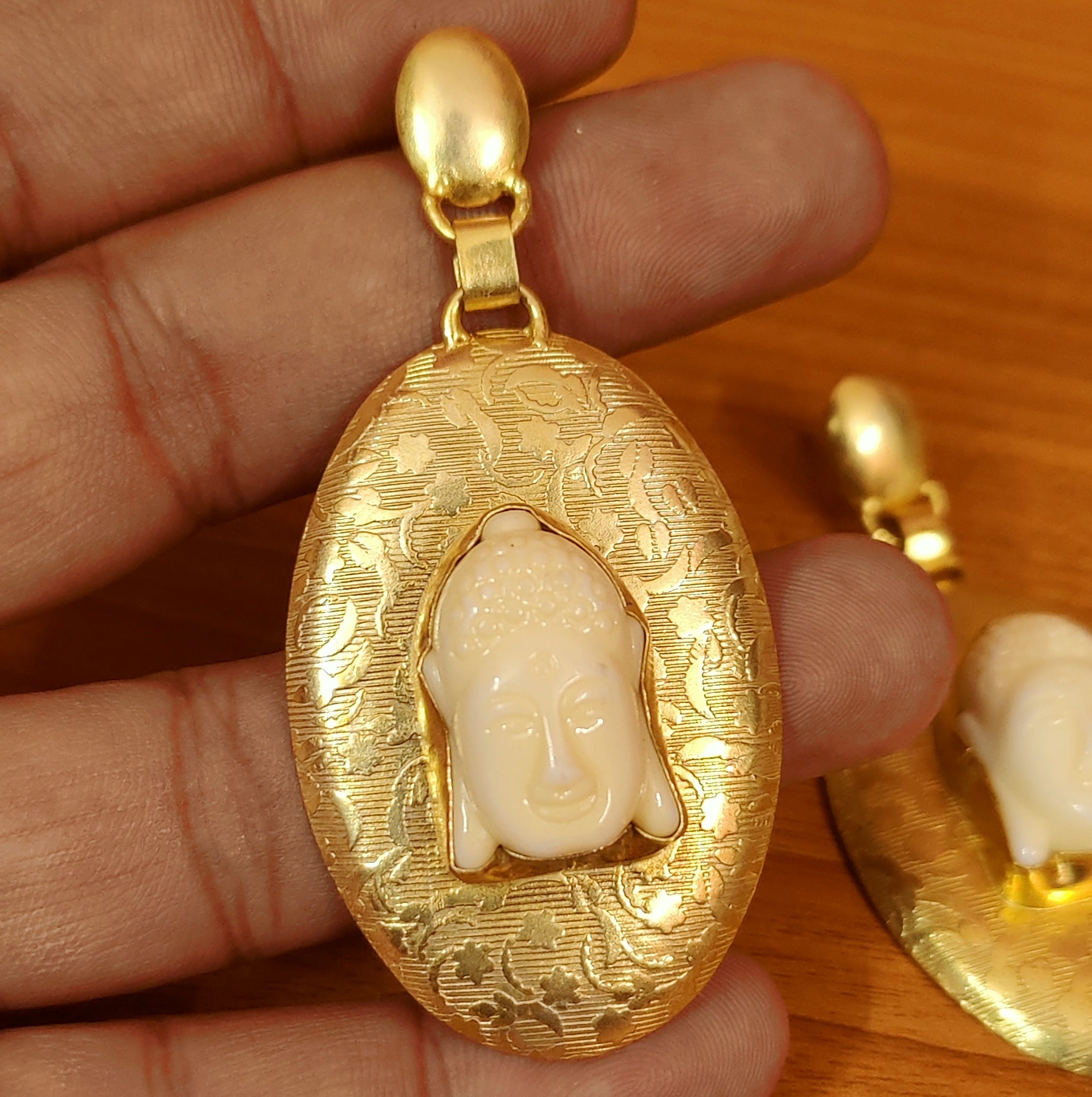 GOLD PLATED BUDHHA CARVED STONE EARRINGS