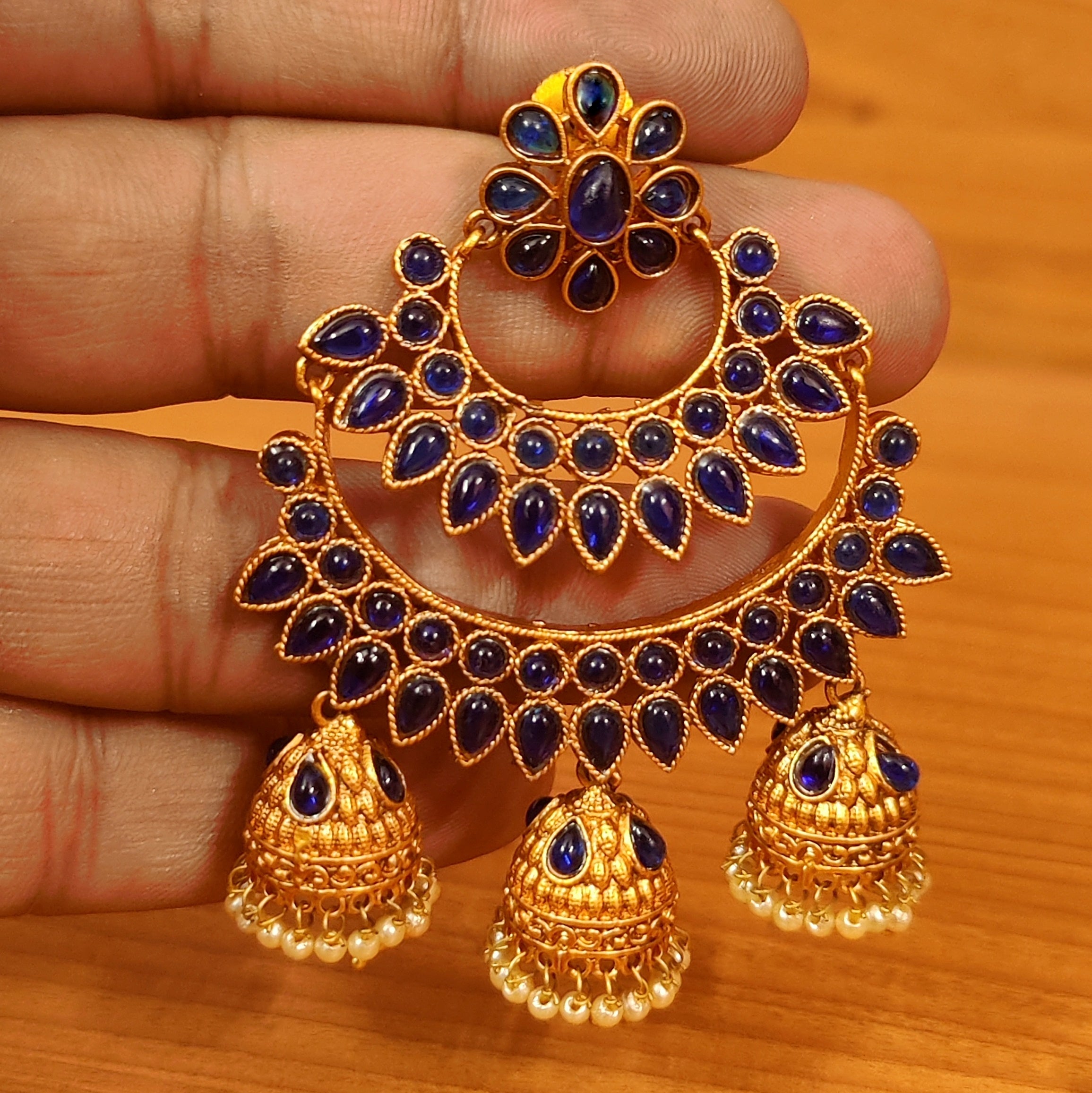 BLUE POLKI STUDDED CHAANDBAALI JHUMKA'S
