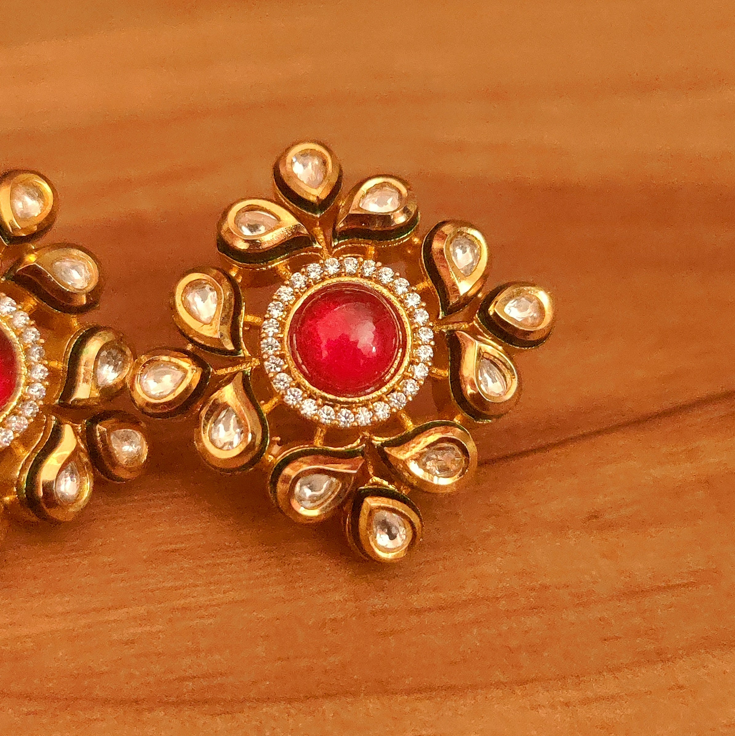 RUBY KUNDAN LOOK CZ STUDDED GOLD PLATED STUDS