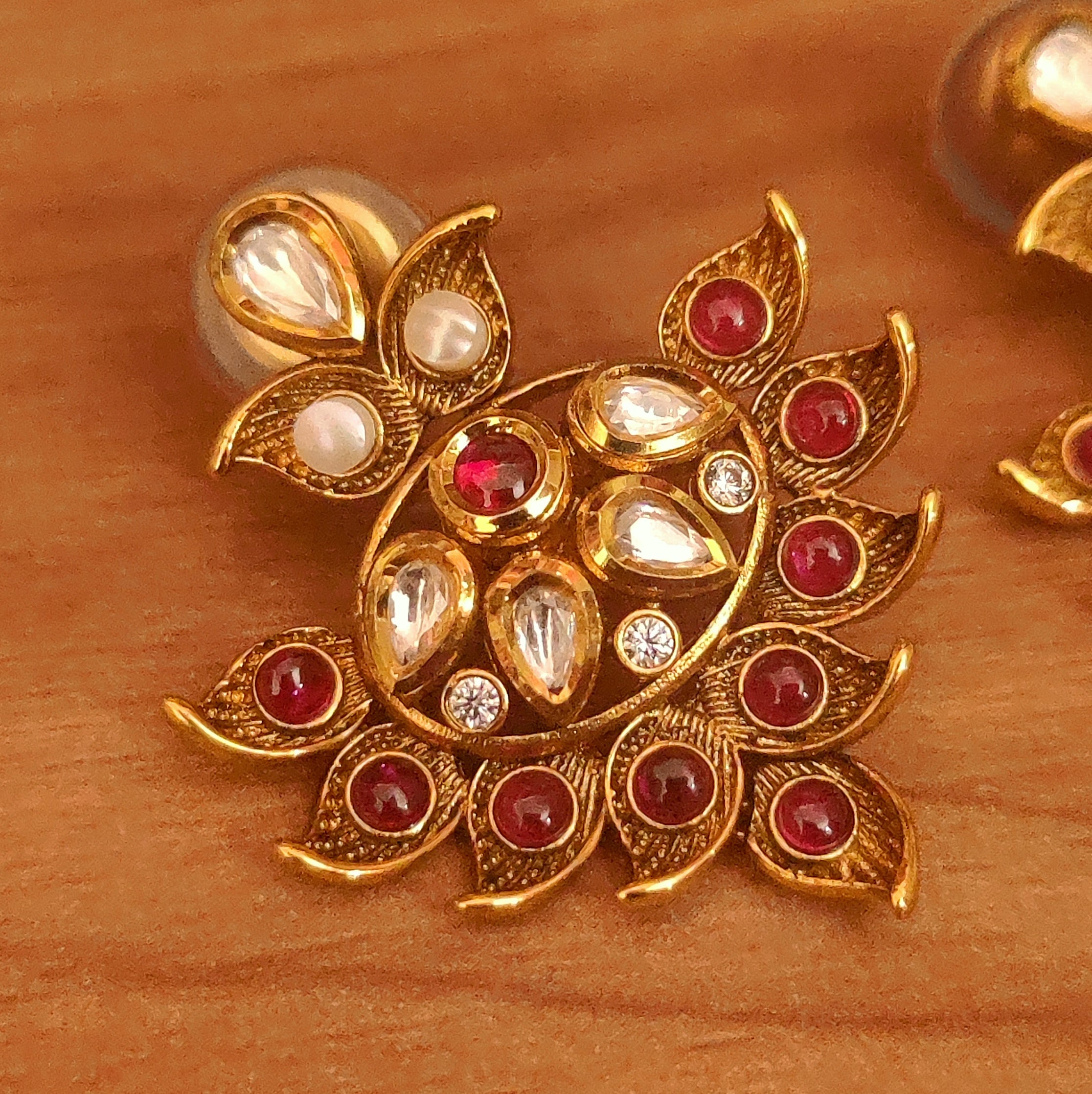 ANTIQUE KUNDAN POLKI RED KEMPU STONE EARRINGS