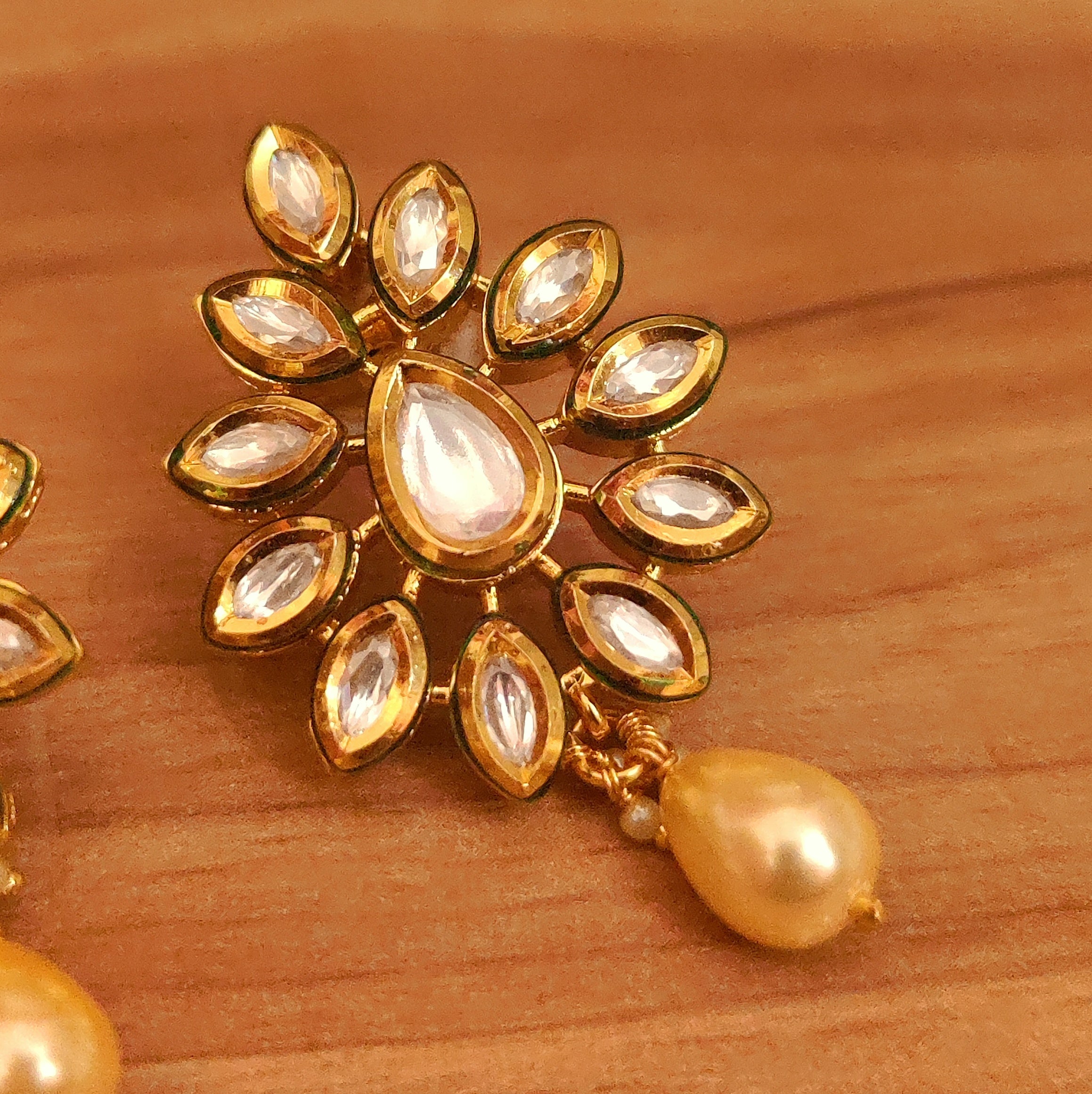 MARQUESE SHAPED KUNDAN POLKI & PEARL EARRINGS