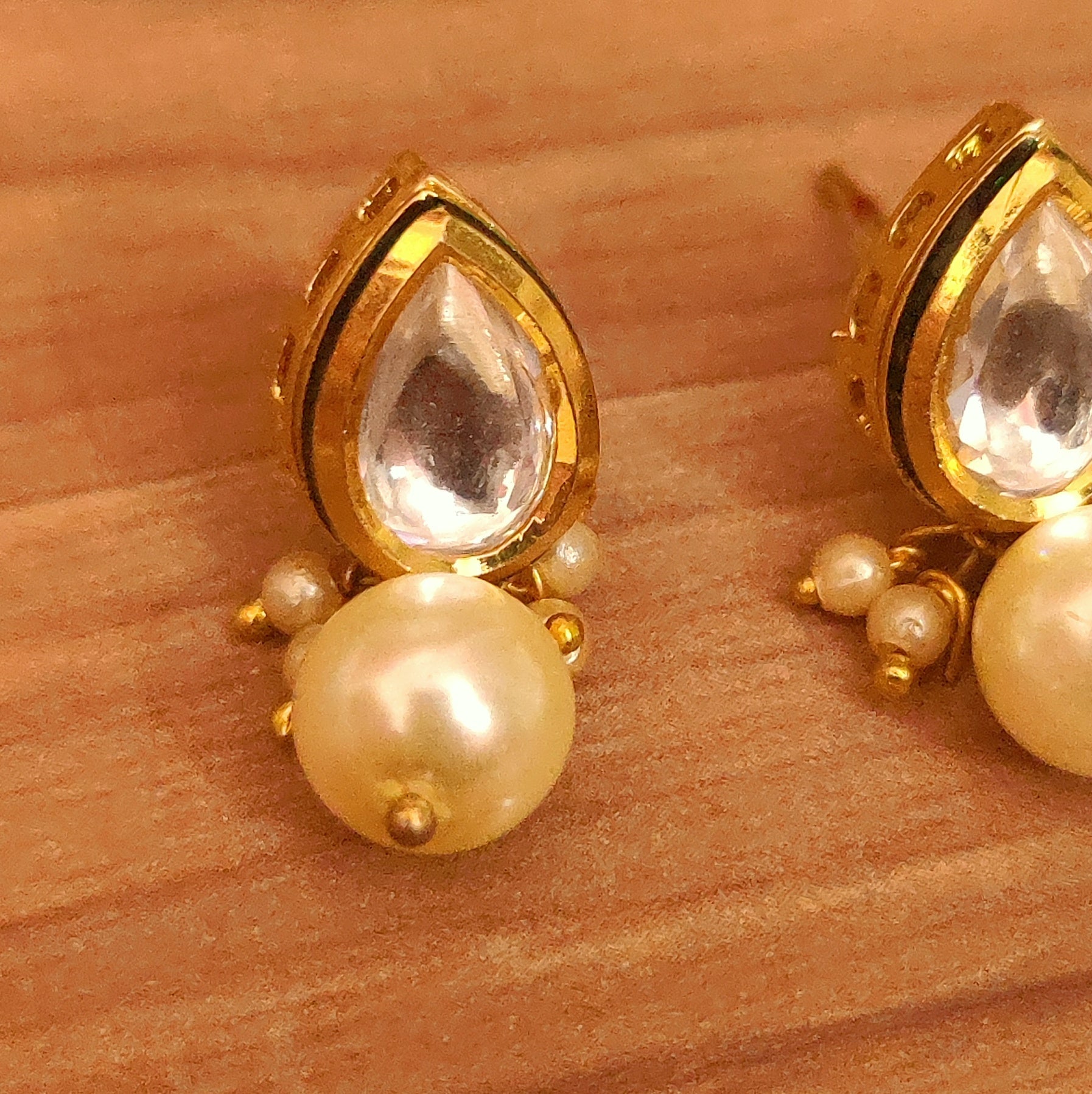 MATT GOLD KUNDAN POLKI & PEARL STUDS