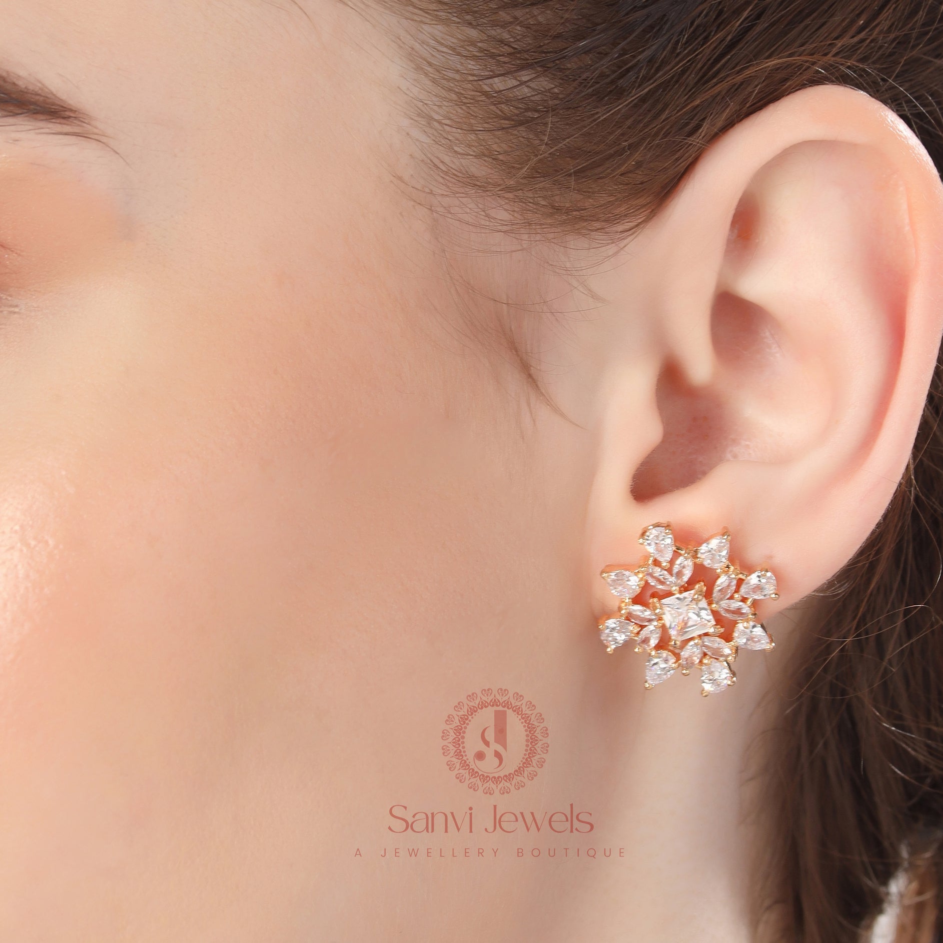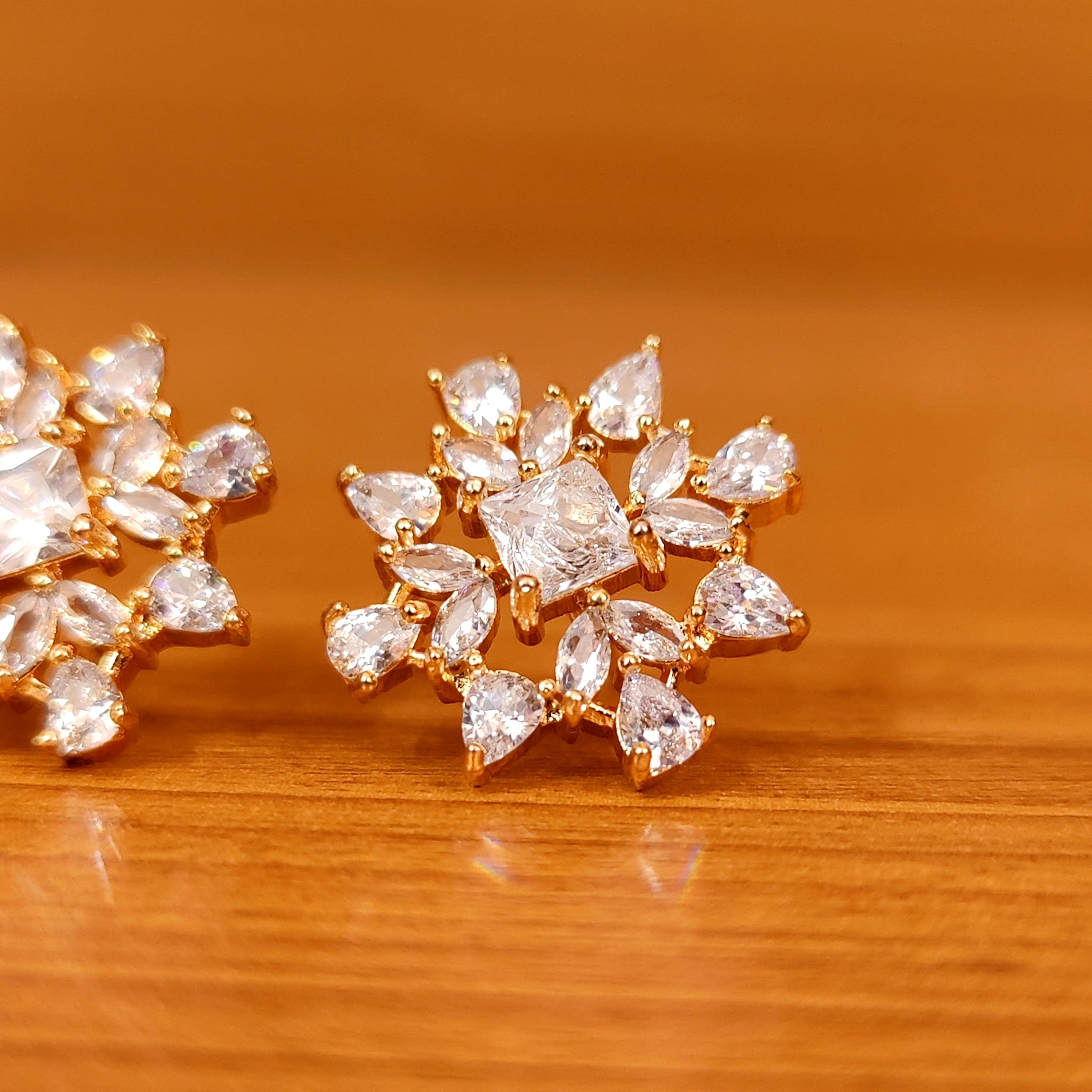 DIAMOND LOOK GOLD PLATED CZ STUDDED EARRINGS