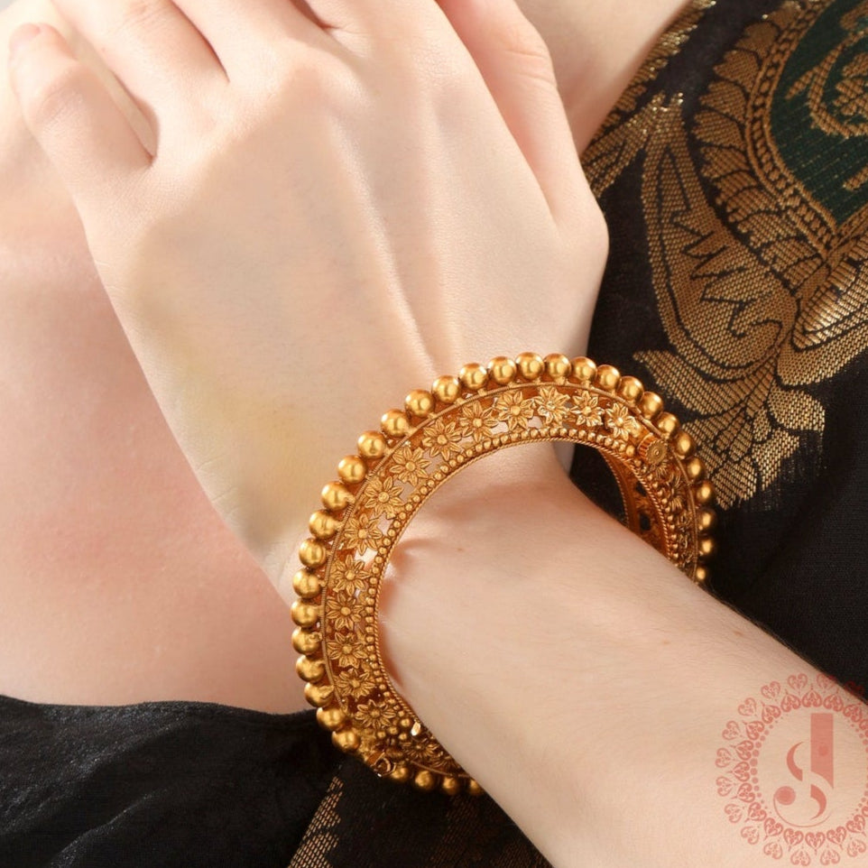 ANTIQUE MATT GOLD PLATED FLOWER LOOK PACHELI BANGLES