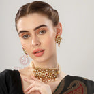This beautiful necklace set is handcrafted in silver alloy with imitation kundan of very fine quality and semi precious stones. This necklace set is coated with 18 kt gold polish which give them a unique look . An absolutely stunning piece to own and are very light in weight.