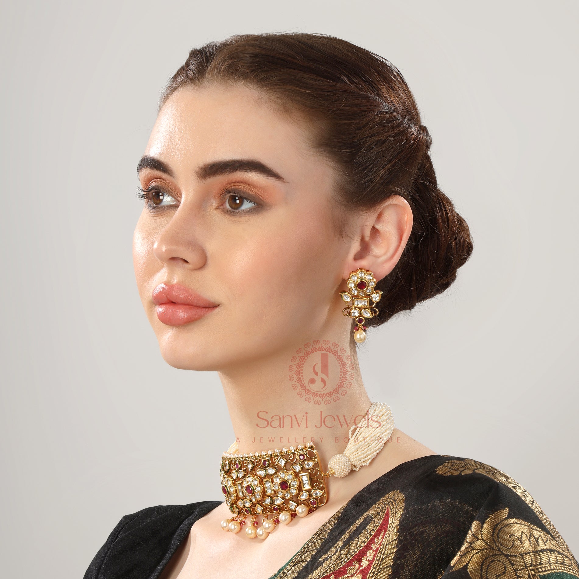 ROYAL RUBY STUDDED KUNDAN POLKI CHOKER NECKLACE SET