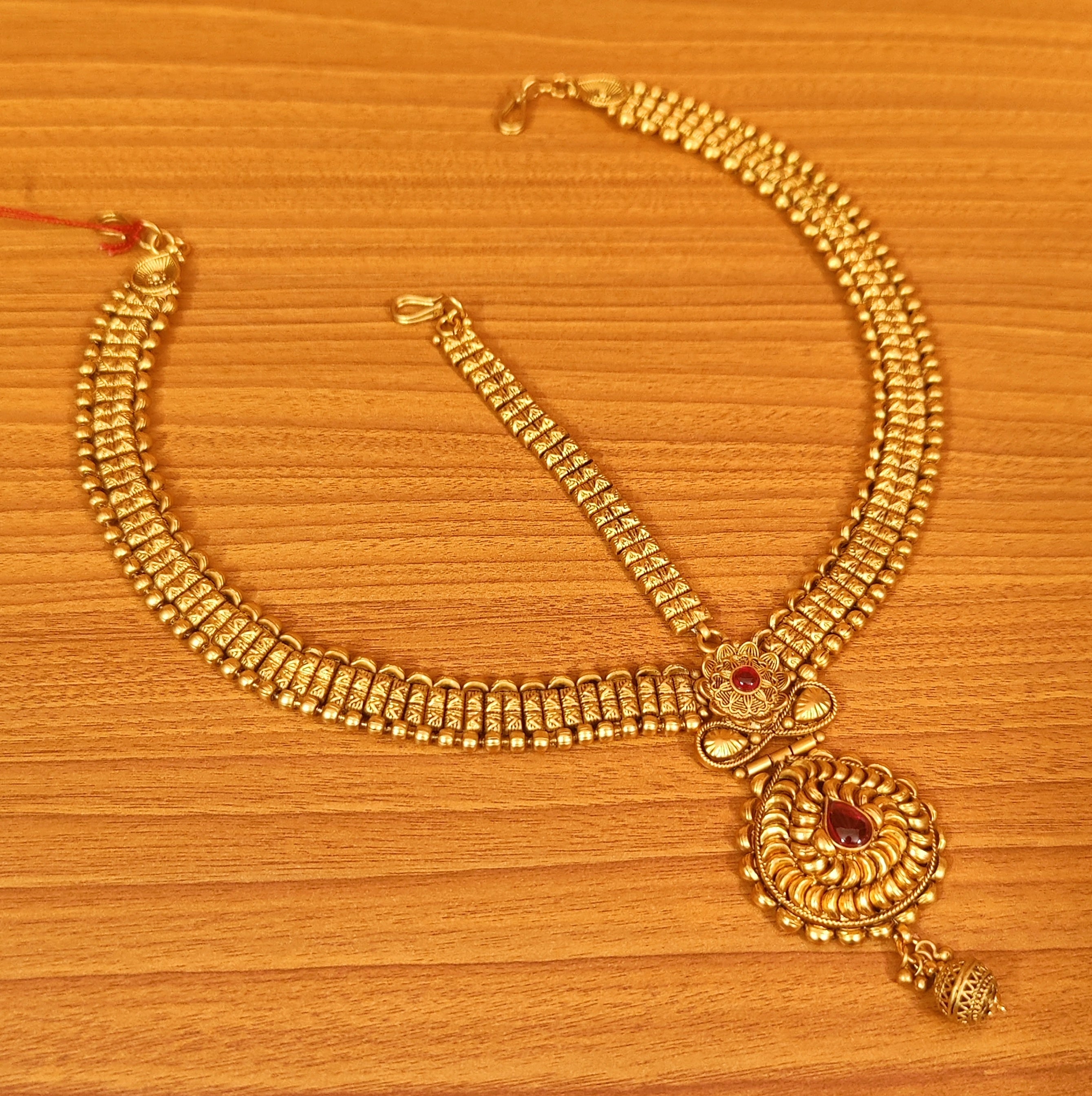 RUBY KEMPU STONE GOLD LOOK BRIDAL MATHAPATTI