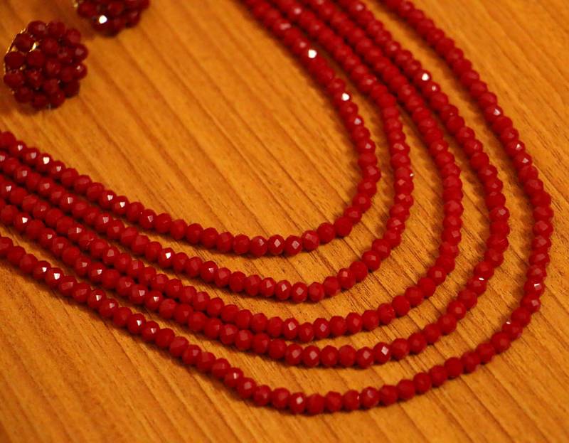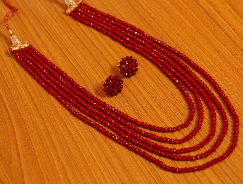 5 Line Ruby Colour Multi Sting Necklace Set