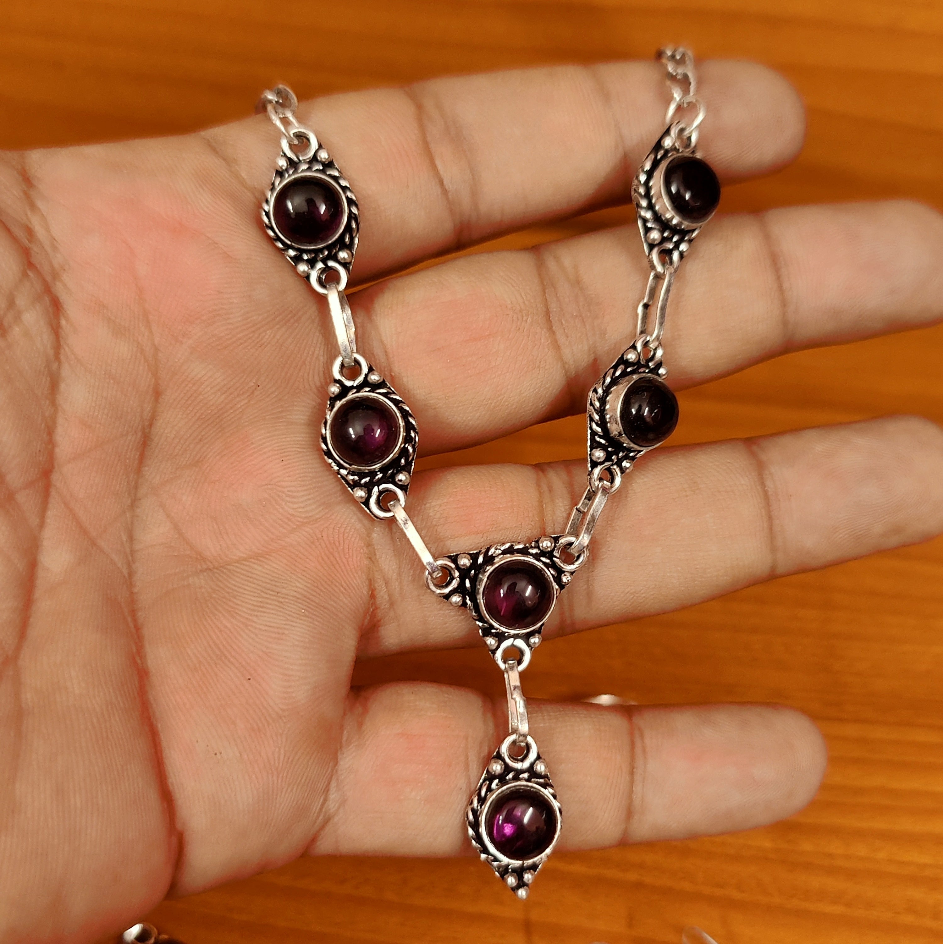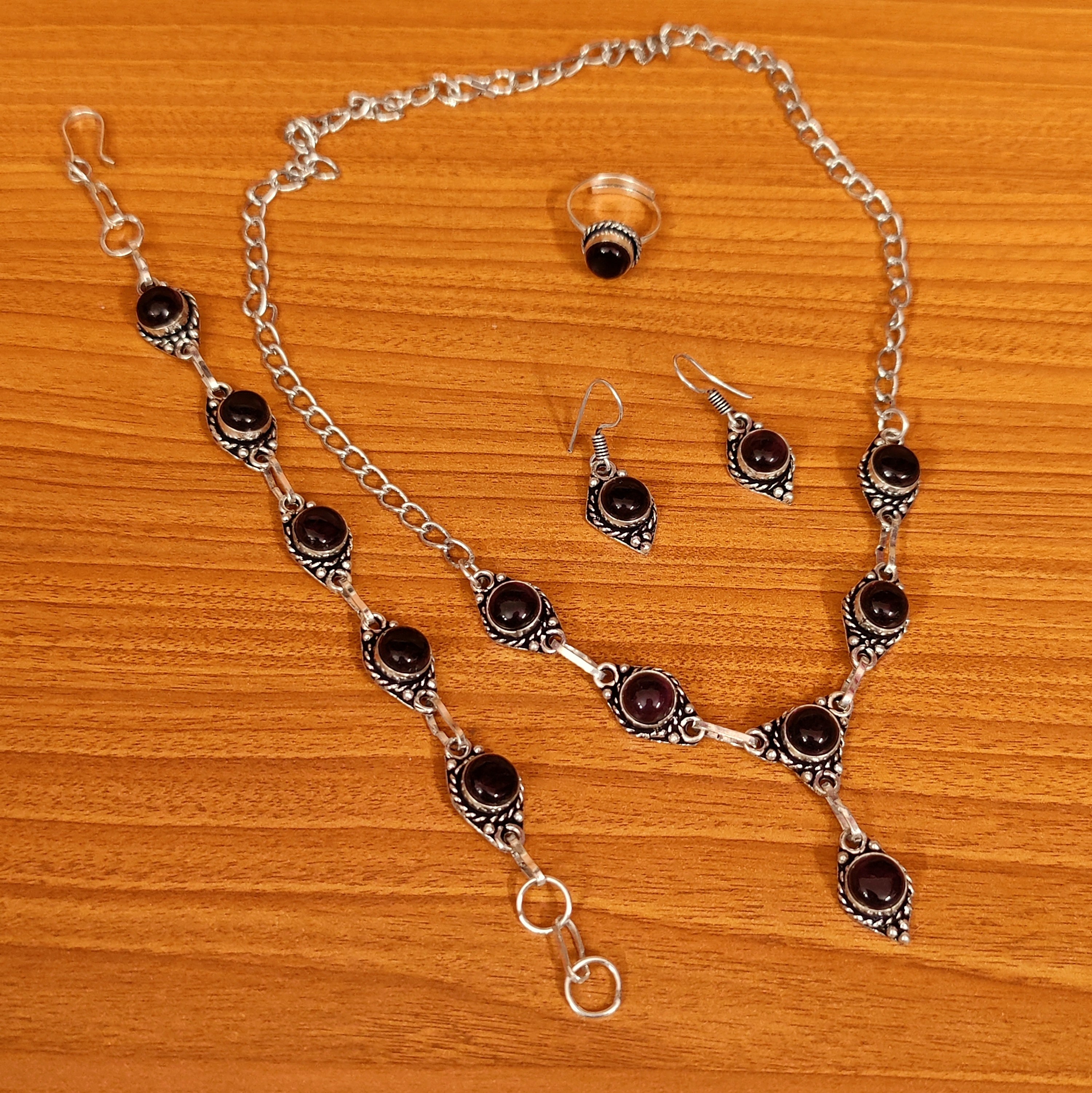 AMETHYST COLOUR OXIDISED SILVER NECKLACE SET COMBO