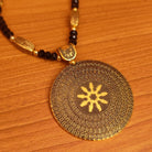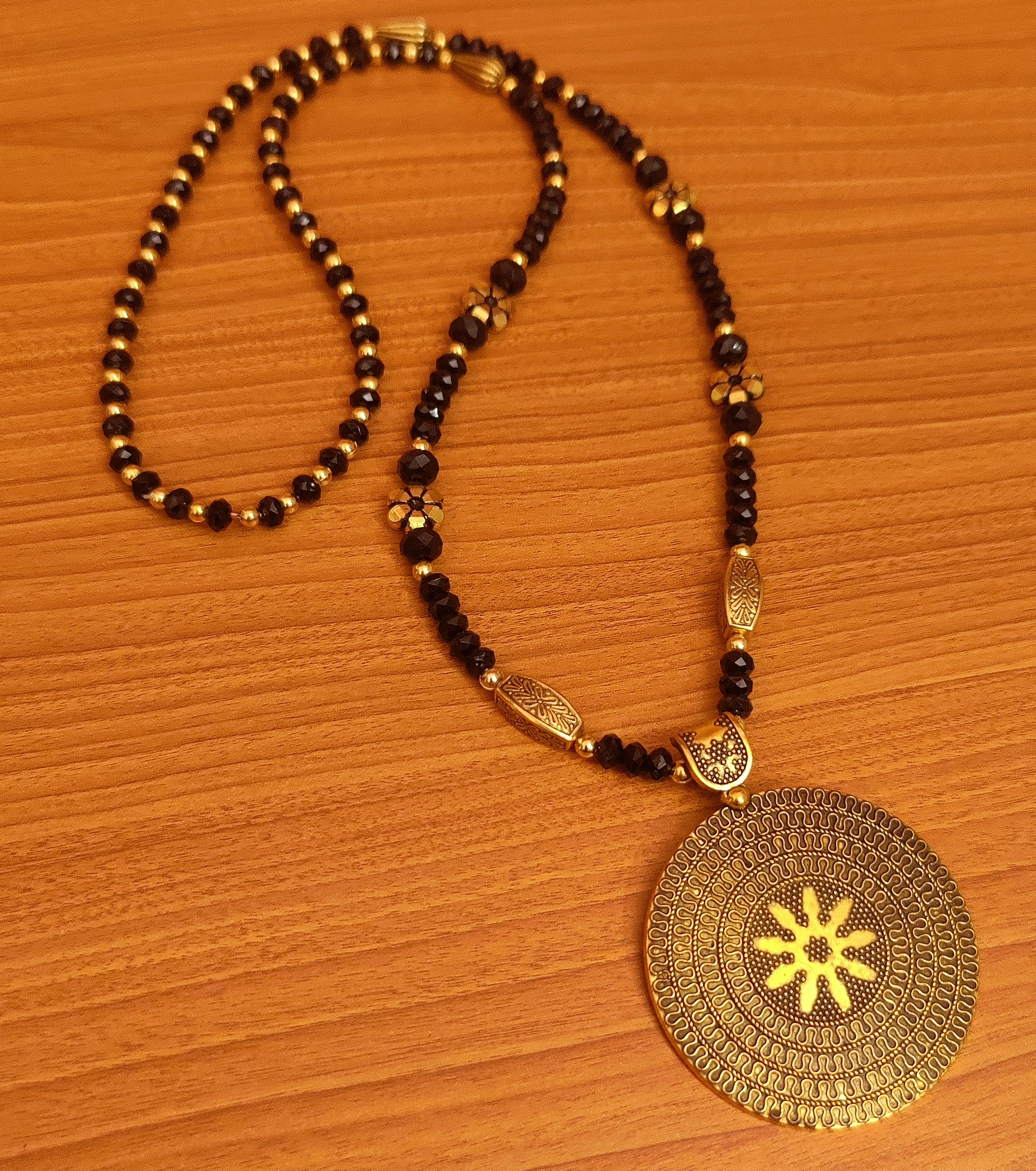 This necklace is handcrafted in black & gold beads with brass antique motifs , the necklace is light in weight and trendy and can be worn casually.