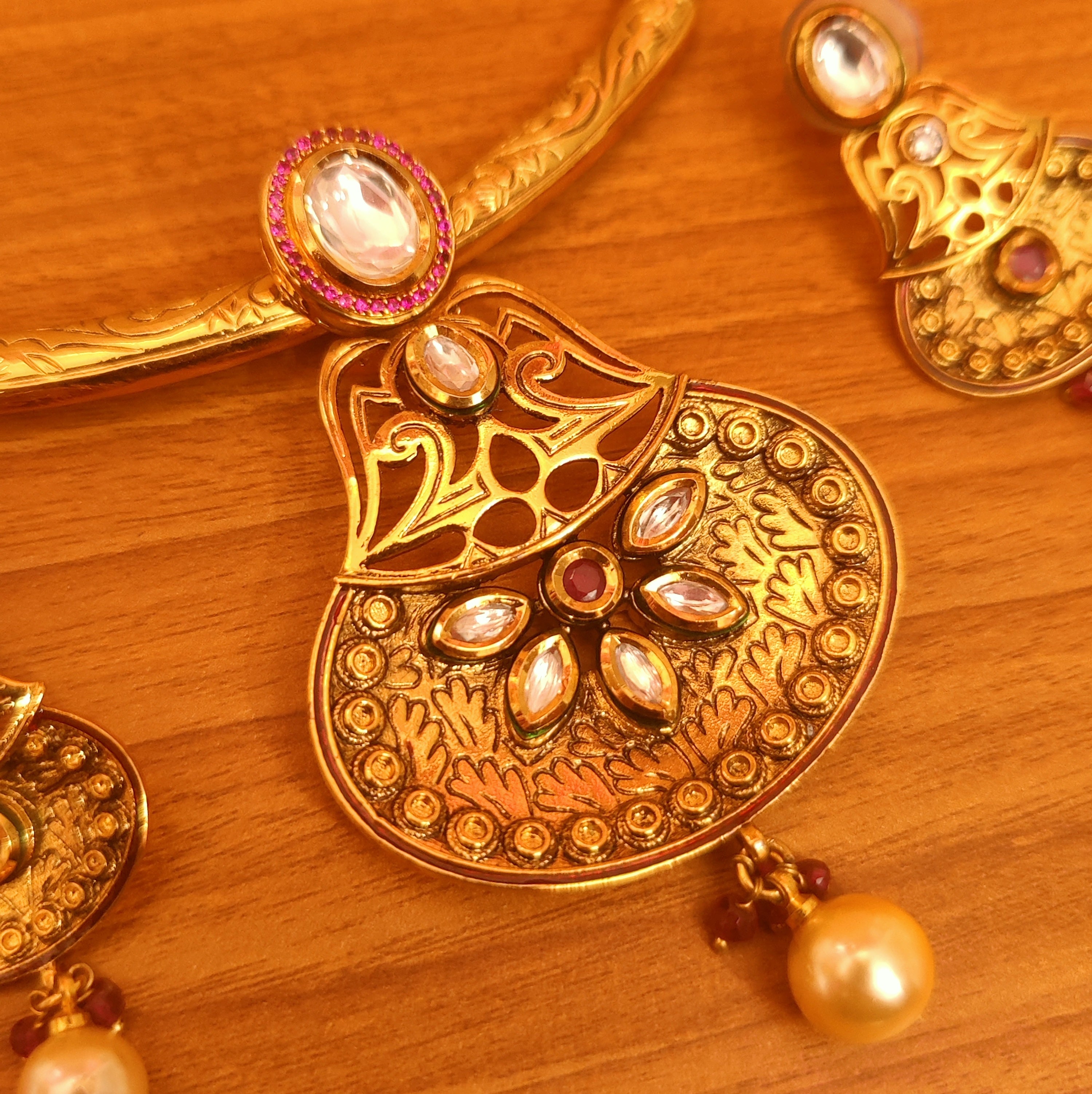 ANTIQUE GOLD LOOK RUBY STUDDED HASLI NECKLACE SET