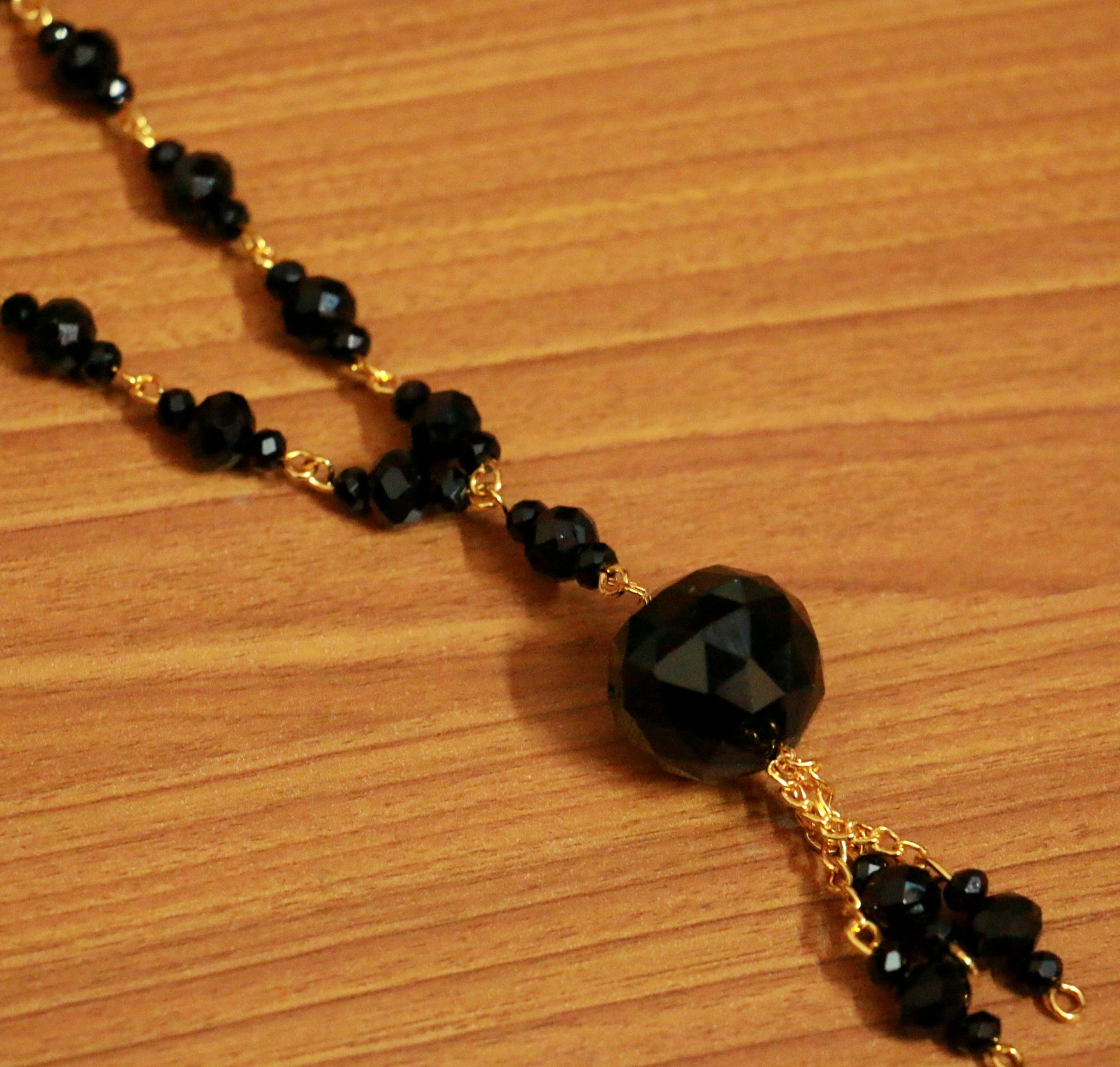 This ethnic necklace is handcarfted in copper alloy with imitation black & gold beads of very fine quality , the necklace is very light in weight and plated with gold rhodium