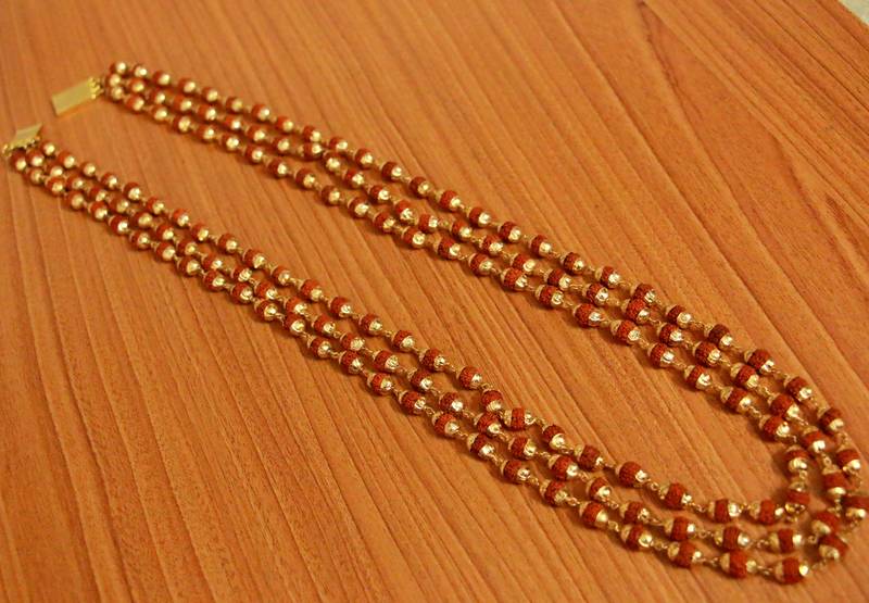 This beautiful necklace is handcrafted in brass alloy with imitation rudraksh beads of very fine quality . This neckace is coated with 18 kt gold polish which give them a unique look . An absolutely stunning piece to own and are very light in weight.