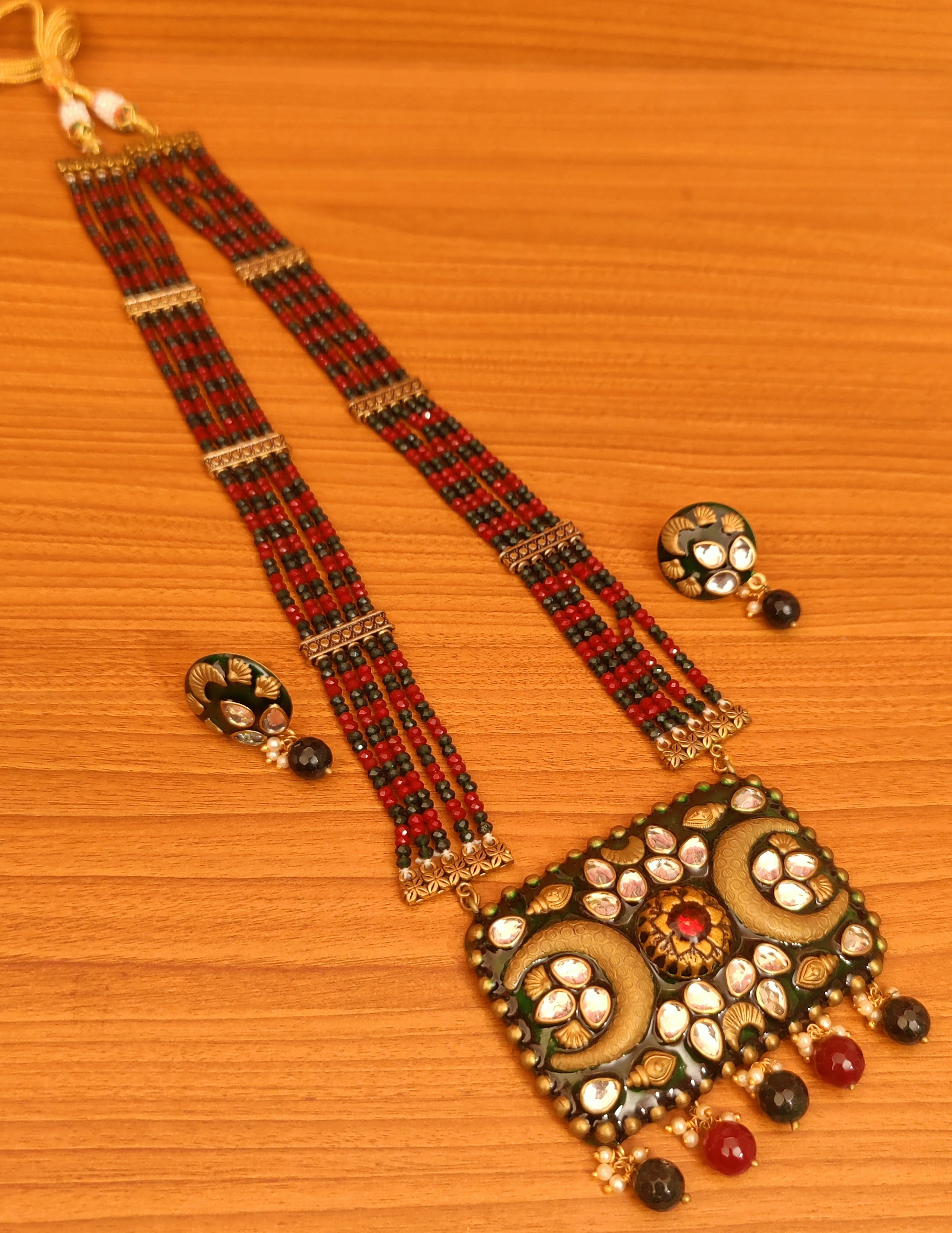 GREEN MEENAKARI KUNDAN LOOK MULTICOLOUR NECKLACE SET