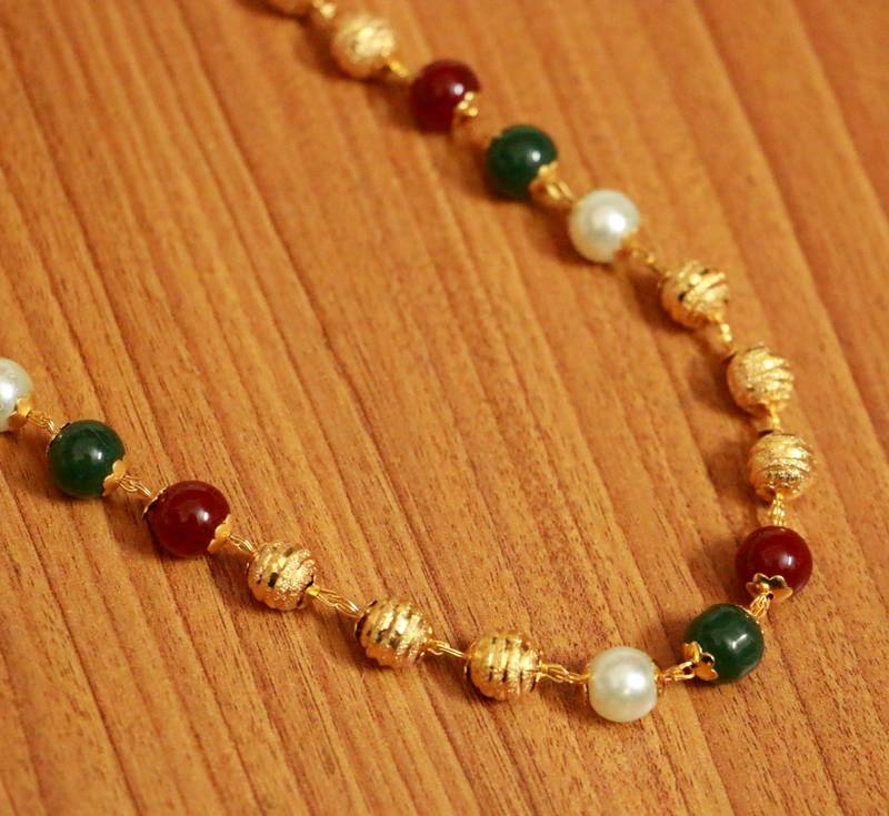 Multicolour Gold Bead & Pearl Necklace