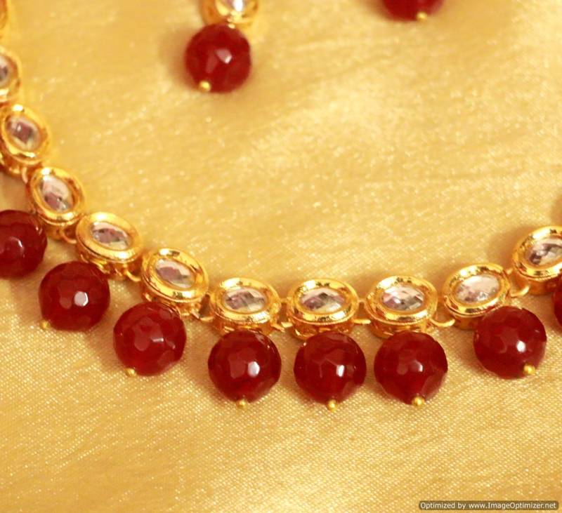 This beautiful necklace set is handcrafted in silver alloy with imitation ruby & kundan with meenakari work of very fine quality . This necklace set is coated with 18 kt gold polish which give them a unique look . An absolutely stunning piece to own and are very light in weight.