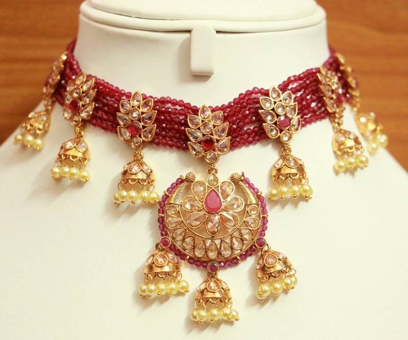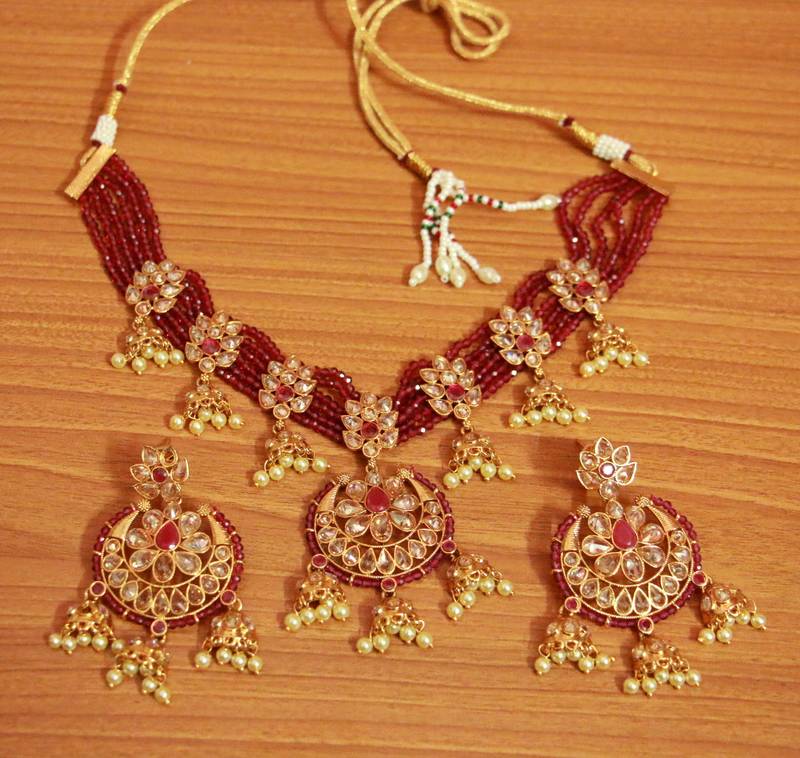 Ruby Polki & Pearl Ethnic Choker Necklace Set
