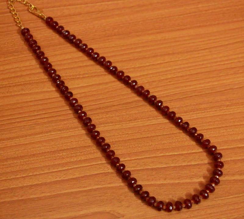 This Necklace Is Handcrafted In Brass Alloy With Real Ruby Bead Work Of Fine Quality , The Necklace Is Plated With 18kt Nickle Free White Gold Plating Which Gives It A Real Look .