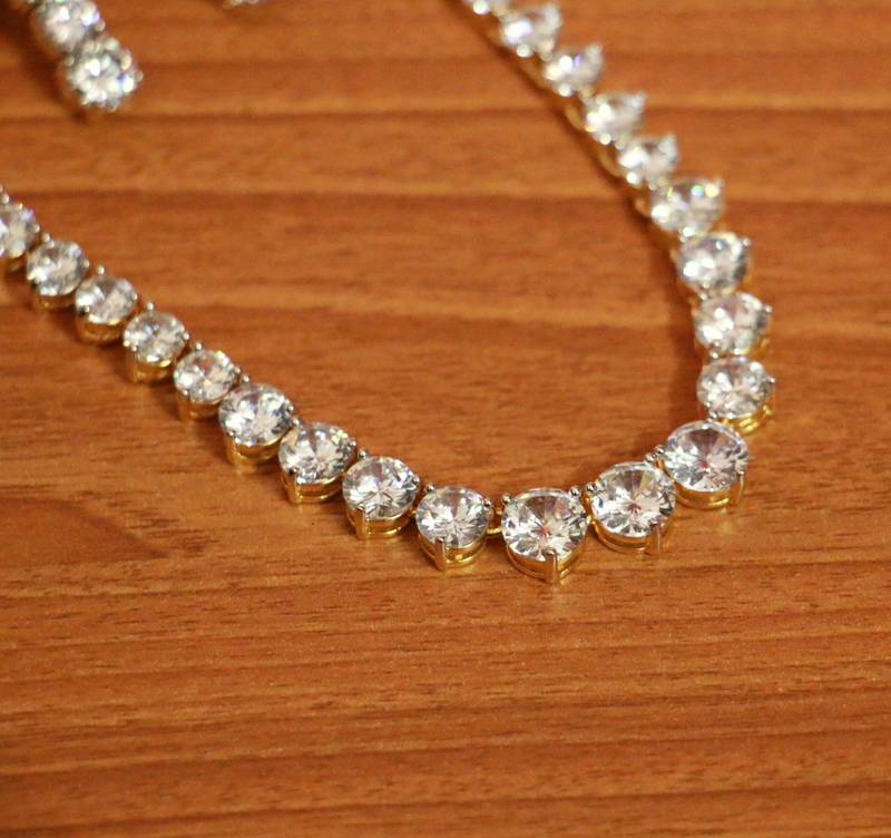 SINGLE LINE SIGNITY STUDDED DIAMOND LOOK NECKLACE SET
