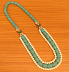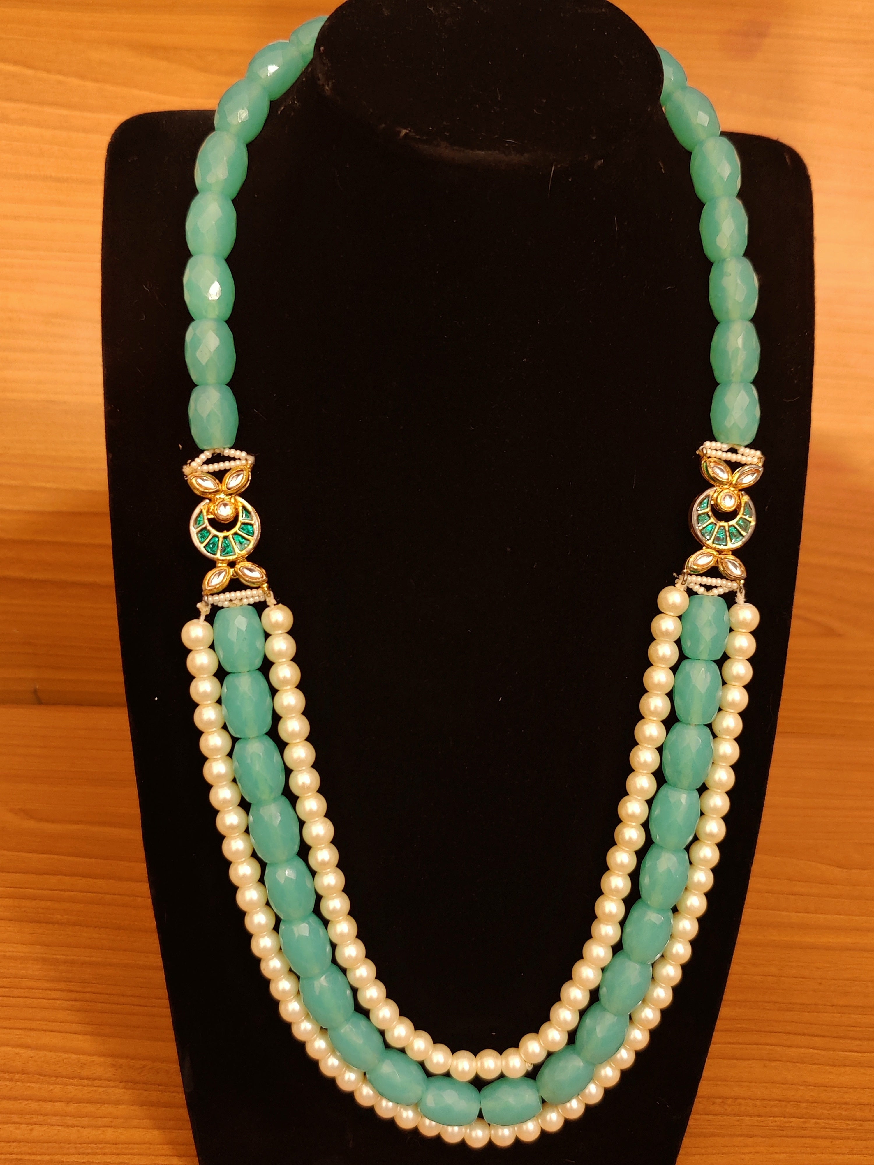 TURQUOISE COLOUR KUNDAN POLKI & PEARL NECKLACE