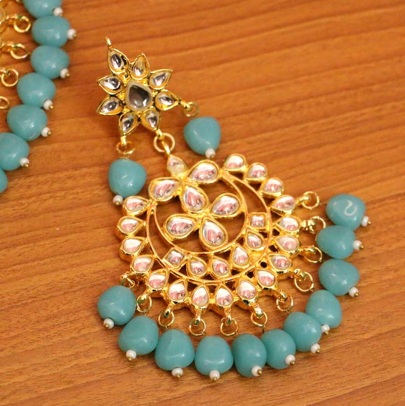 This Kundan Polki Necklace Set Is Handcrafted In Silver Alloy With Imitation Turqouise Colour Stones And Kundan Polki Stones Of Fine Quality , The Necklace Set Is Plated In 18kt Gold Plating And The Design Itself Is Perfect For Wedding Attires.