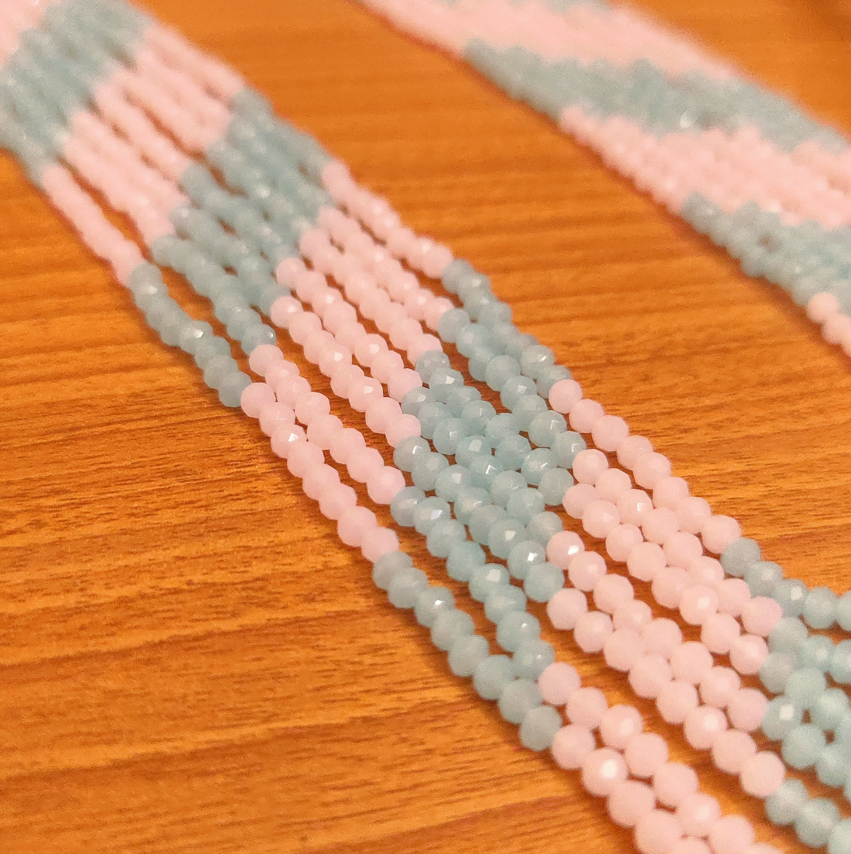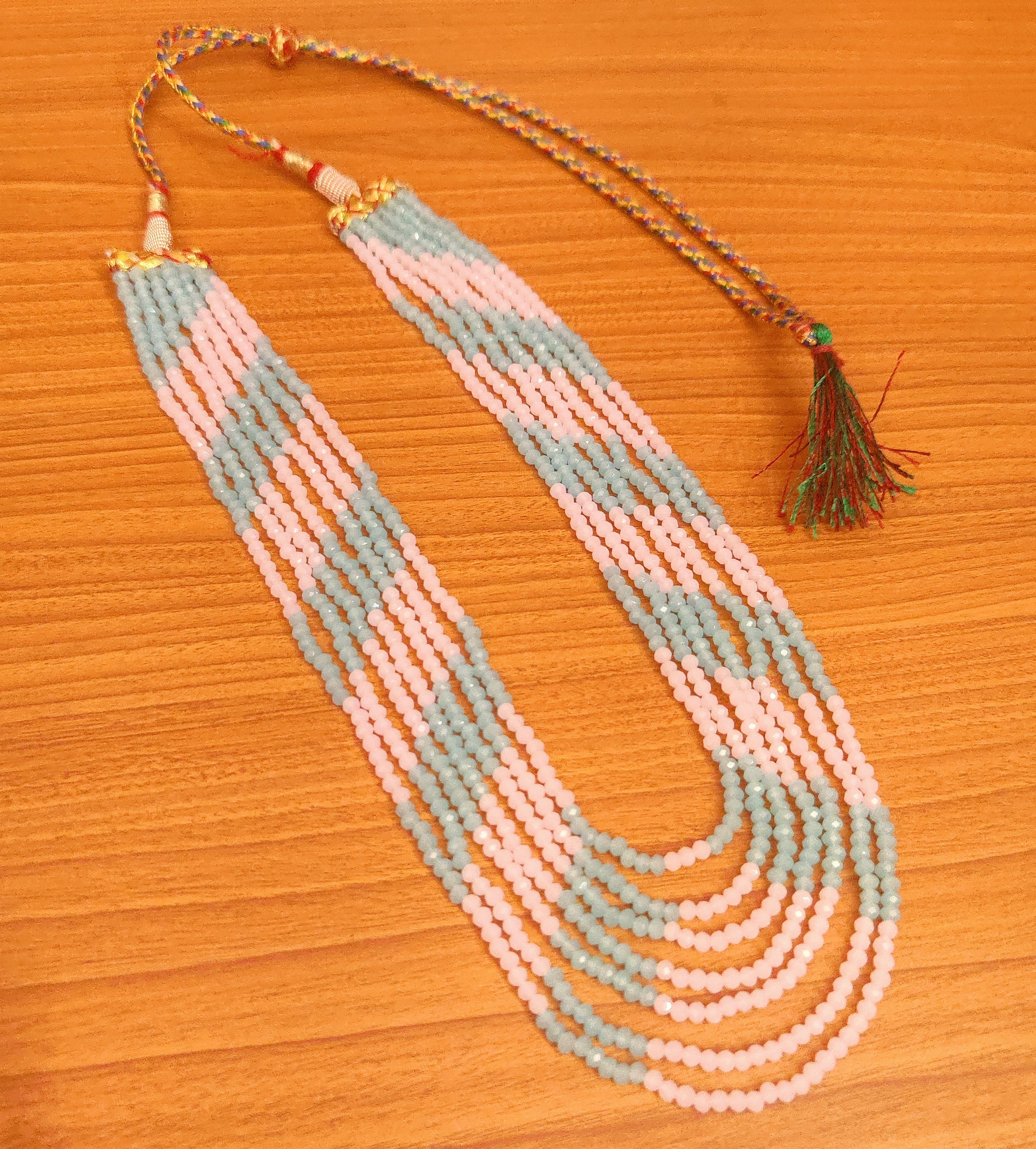 TURQUOISE & PINK COLOUR 7 LINE NECKLACE SET