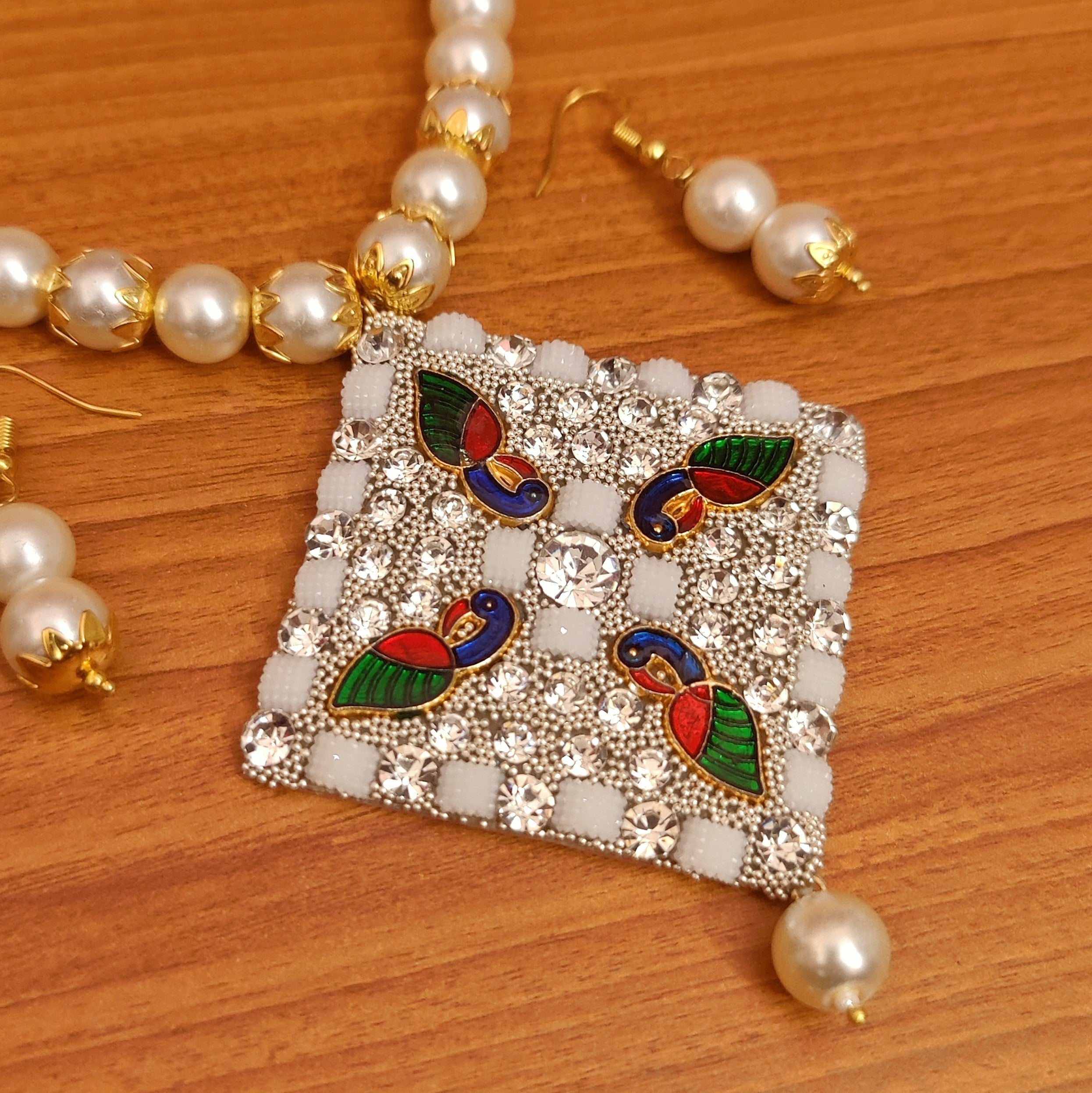 WHITE COLOUR ZIRCON STUDDED NECKLACE SET