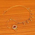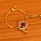 This beautiful nose ring is handcrafted in brass alloy with imitation red colour stone & cz stone and kundan with meenakari work of very fine quality . this nose ring is coated with 18 kt gold polish which give it a real look . an absolutely stunning piece to own and is very light in weight.
