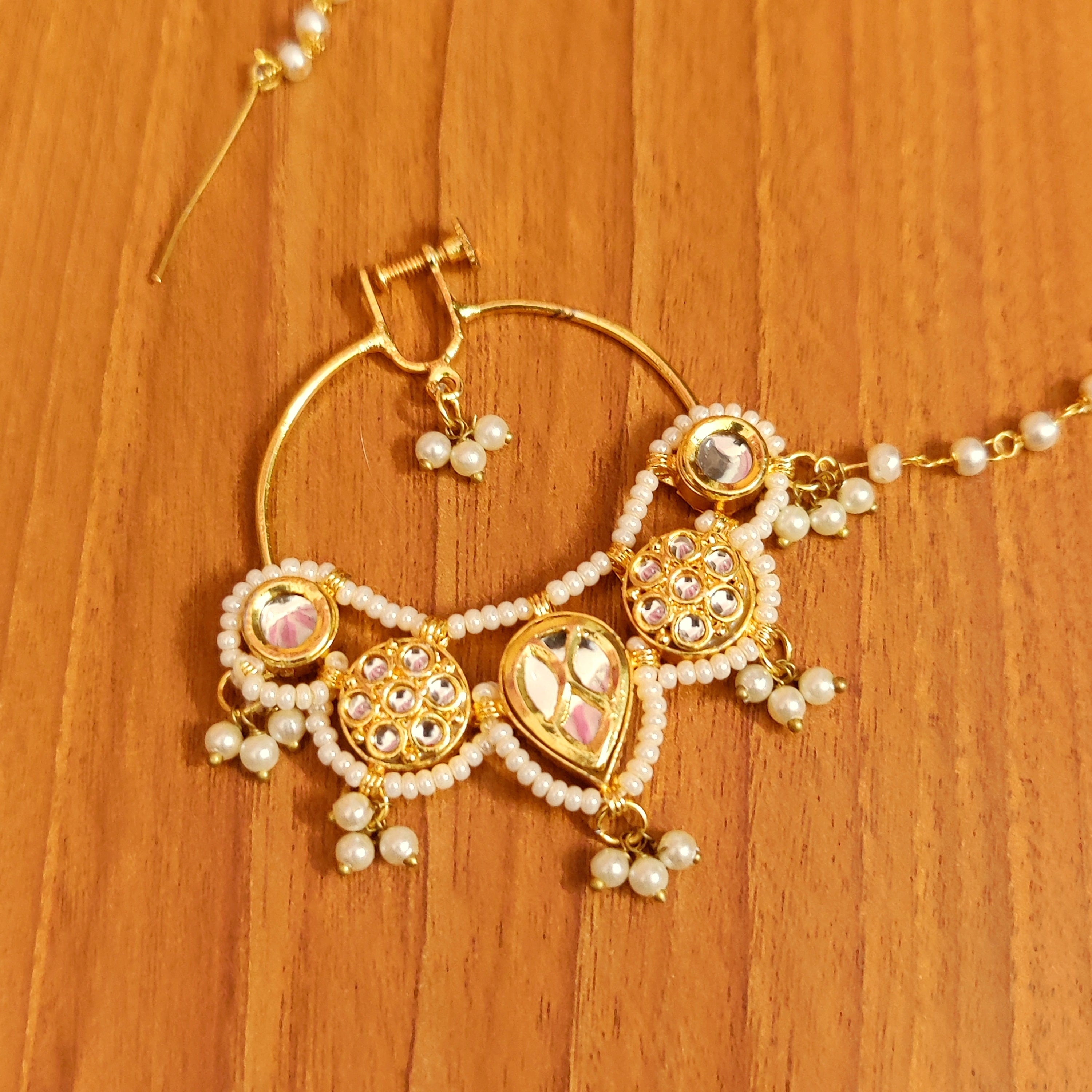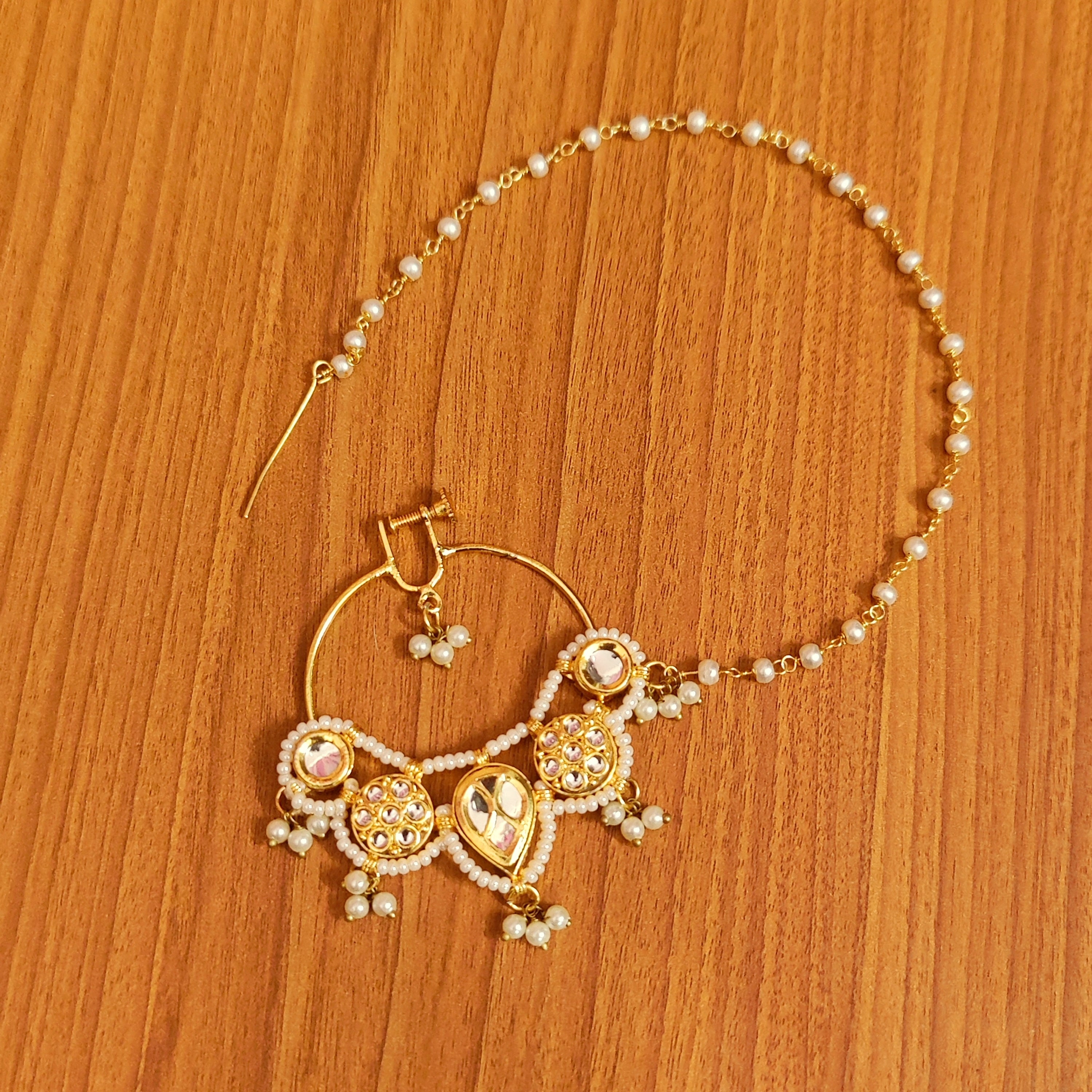 White Kundan Nose Ring