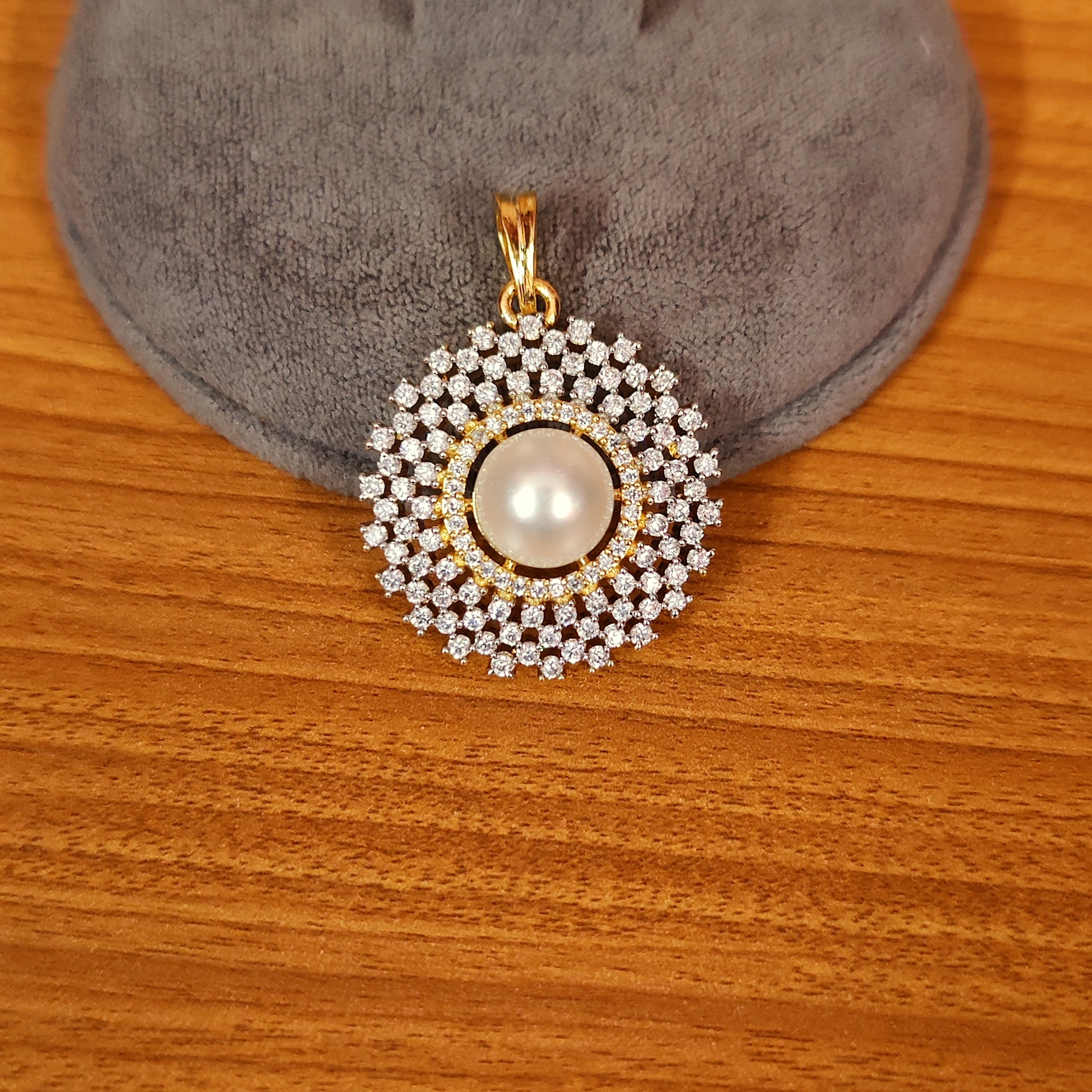 PEARL & CZ STUDDED DIAMOND LOOK PENDANT SET