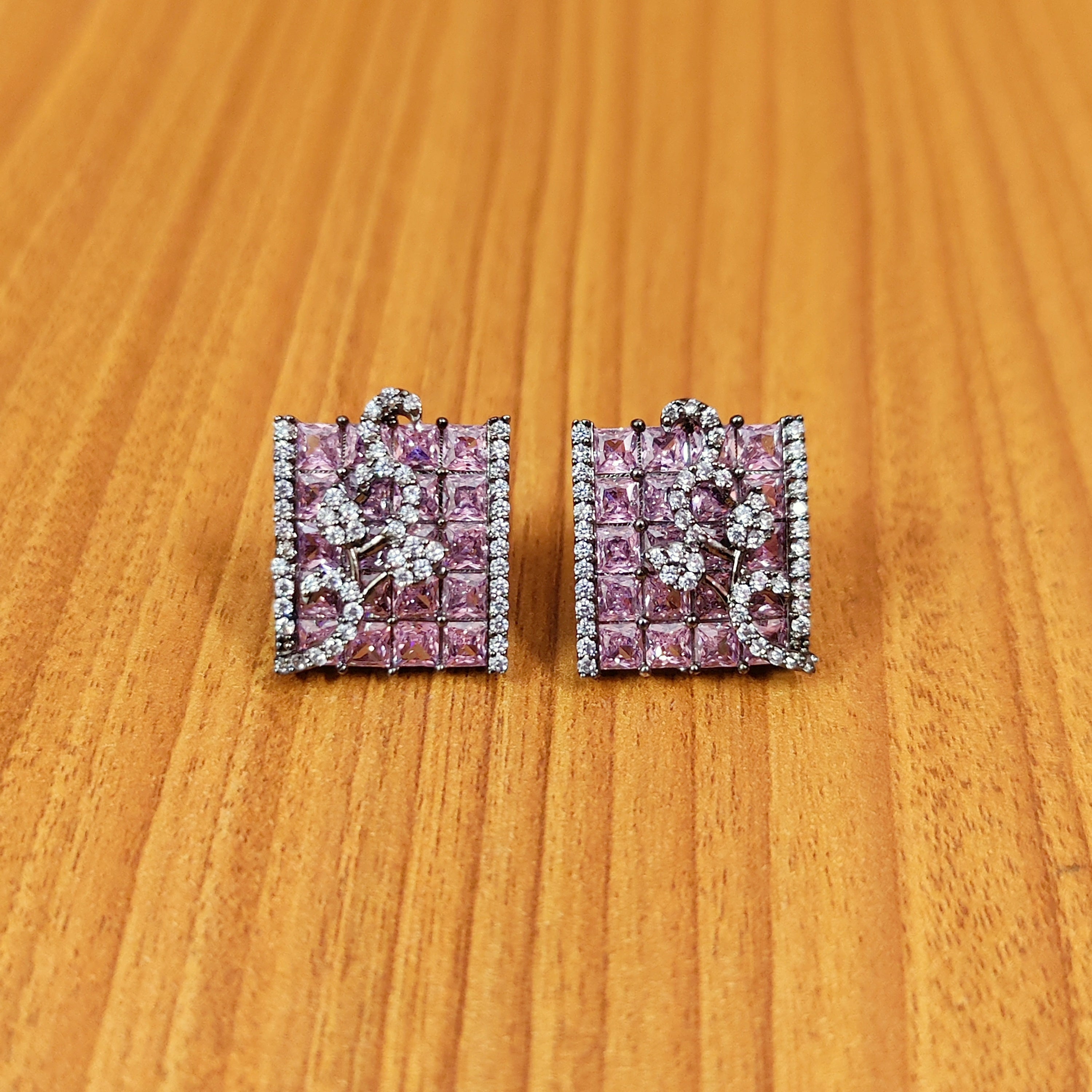 Add a pop of color to your look with our Pink colour CZ Studded Pendant Set! Featuring stunning pink CZ stones, this pendant set is perfect for weddings, parties, and any special occasion. The black rhodium plating and leaf pattern cz studded motif adds a unique touch, while the matching earrings and chain complete the ensemble. Get ready to turn heads and be on trend with this must-have accessory!
